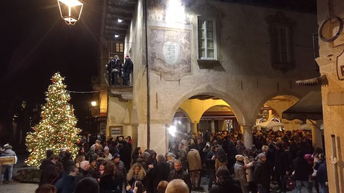 ORTA SAN GIULIO - 01-01-2024 -- Come ogni anno, nonostante il meteo uggioso, la festa di fine anno in piazza Motta ha attirato tantissimi visitatori che hanno riempito la piazza e i parcheggi di tutto il circondario. Come di consueto aspettando la mezzanotte sotto il palazzotto una band ha intrattenuto e fatto ballare con i più grandi successi delle scorse decadi finchè, scattata la mezzanotte, è cominciato lo spettacolo pirotecnico di fronte all'isola di San Giulio. Emozionante come sempre in una location suggestiva, quest'anno impreziosita dall'illuminazione curata dal Distretto dei laghi. Al termine ancora festa con musica e possibilità, al primo piano del vecchio comune, di visitare la mostra dei presepi di Loda.