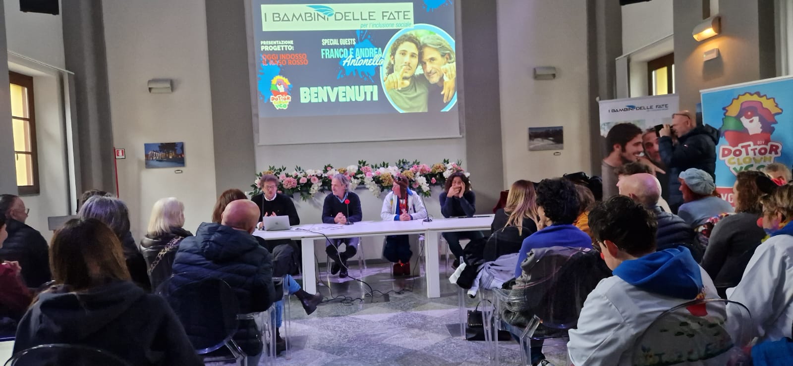 DOMODOSSOLA - 22-2-2024 -- I Bambini delle Fate e Dottor Clown VCO hanno presentato questa mattina, in Cappella Mellerio, il progetto “Oggi indosso il Naso Rosso”. Oltre agli special guests, Franco e Andrea Antonello, fondatori della Impresa Sociale “I Bambini delle Fate”, sono intervenuti Cristian Negri (referente per il Vco dell’iniziativa) e Andrea Bracali (presidente di Dottor Clown Vco). Grazie a questo nuovo importante progetto di inclusione e grazie agli imprenditori del VCO, diversi ragazzi con disabilità o con autismo diventeranno Dottor Clown. «Gli obiettivi primari saranno il cambio di ruolo, l’autodeterminazione, non vediamo l’ora di iniziare» ha sottolineato Andrea Bracali, presidente dell’associazione Dottor Clown VCO, sul territorio da 14 anni e presente con i volontari in 14 strutture sociosanitarie e socioassistenziali, ogni sabato e ogni domenica. «La risposta di Domodossola e dintorni al progetto è stata finora molto positiva» ha aggiunto Cristian Negri, il referente per il VCO di questa bellissima iniziativa. La collaborazione tra Dottor Clown VCO e la fondazione I Bambini delle Fate è nata da qualche mese e sta già dando i primi frutti. I Bambini delle Fate è un’impresa sociale fondata a Castelfranco Veneto (Treviso) da Franco e dal figlio Andrea Antonello, nove anni fa, per dare sostegno economico a progetti a favore di famiglie e ragazzi con autismo o altre disabilità. Franco è un imprenditore che ha dedicato tutta la sua vita a migliorare, anche grazie ai viaggi, raccontati attraverso libri, la vita del figlio autistico. Questo con il dottor Clown Vco è uno dei 102 progetti che I Bambini delle Fate sponsorizza in tutta Italia: «Grazie soprattutto agli imprenditori – ha detto Franco Antonello, per la prima volta a Domodossola –: riusciamo a coinvolgerli in un sistema che dà loro vantaggi etici, fiscali, di pubblicità e di marketing. Stiamo dando vita, speranza a quei ragazzi e alle associazioni che hanno tanti progetti e un cuore grande ma non sanno come riuscire a finanziarli». Una vita dedicata al figlio autistico e la passione per i viaggi che hanno aiutato Andrea a migliorare la sua condizione e ad aprirsi. Da un viaggio avventura in moto in America con il figlio Andrea è partito tutto, è nato un libro e un film “Se ti abbraccio non aver paura”.