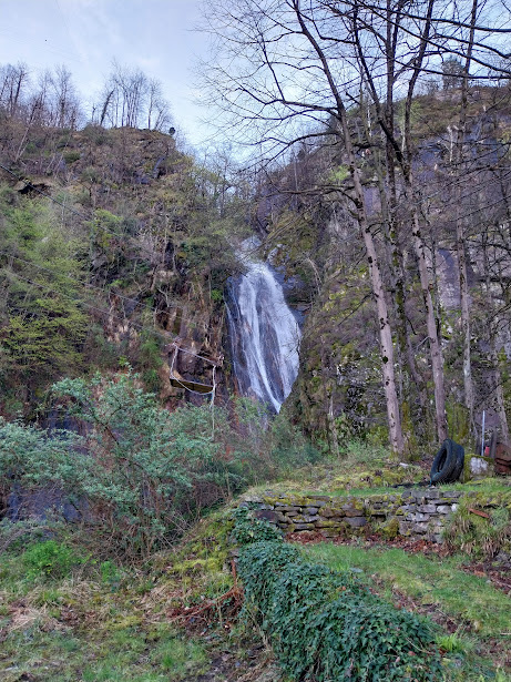 A sinistra del campanile di Cosa inizia il sentiero che supera su un ponte di ferro il Rio Robana, oggi ricco di acqua. Sopra di noi, alla nostra destra, forma una bella cascata. Il primo tratto è ripido, con gradini scavati nella roccia, e favorisce il risveglio muscolare. Dopo una cappelletta il pendio si addolcisce e camminiamo nel verde, fortunatamente ancora in ombra, perché la bella giornata lascia prevedere, più tardi, temperature più che primaverili. A quota 485 raggiungiamo Ca' Burtulina.