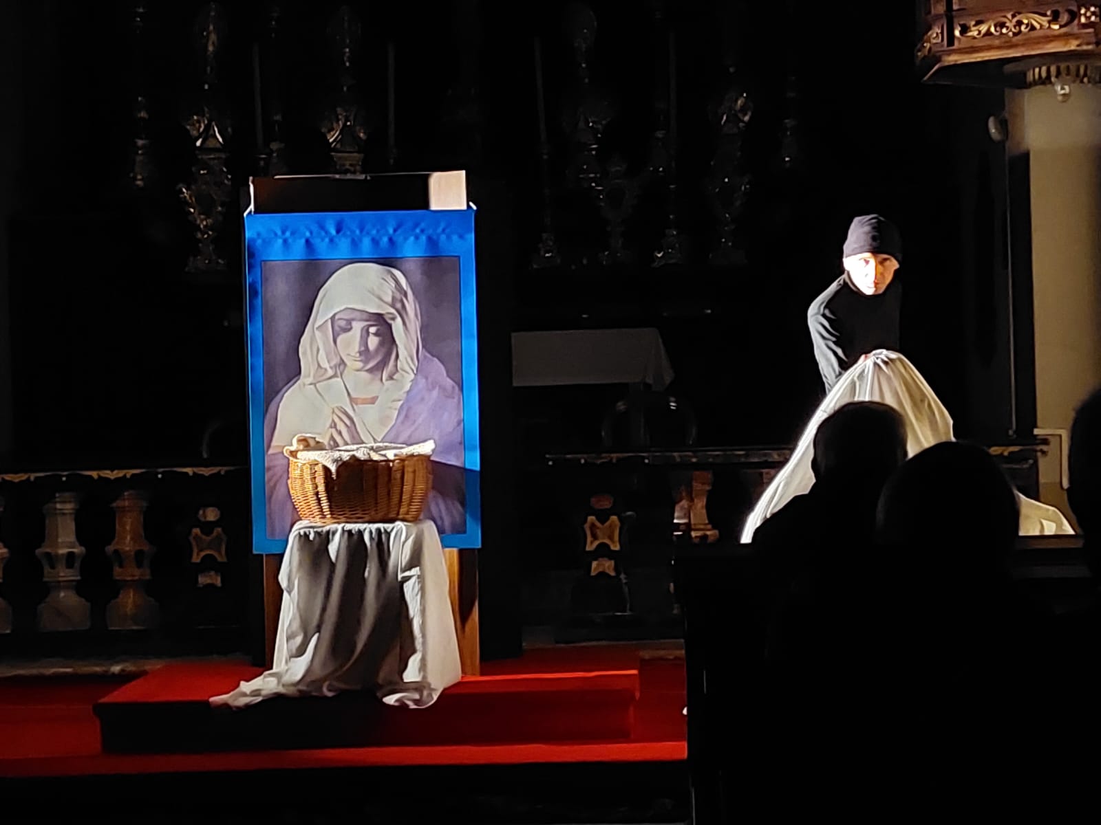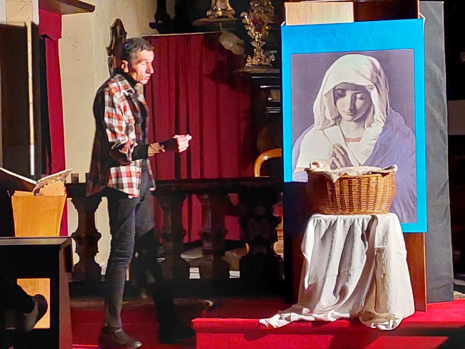 BEURA – 29 – 4 – 2024 -- C’erano le situazioni più drammatiche della vita quotidiana nella posta che San Giuseppe apriva per aiutare Maria a leggerla. È la trama di “Maria e Giuseppe 2.0”, il monologo che Angelo Franchini ha portato sabato sera nella chiesa di San Giorgio a Beura. C’era l’angoscia, la speranza fino all’ultimo, la disperazione di chi vede morire una persona cara e non può far nulla per salvarla; l’amarezza dei genitori abbandonati dal loro figlio; c’era persino la ninna – nanna che lo stesso San Giuseppe cantava a Gesù, per farlo addormentare da piccolo e poi ripeteva sul suo corpo, dopo la morte in croce. Lo spettacolo si inquadrava nelle celebrazioni del patrono di Beura, San Giorgio e il ricavato, le offerte degli spettatori, è destinato alla risistemazione del riscaldamento e alla sostituzione di un elemento dell’orologio sul campanile. Negli intendimenti del parroco, don Paolo, si dovrebbero sostituire gli attuali termo-ventilatori e ridurne il numero, a tutto vantaggio dell’estetica dell’edificio; il costo complessivo degli interventi dovrebbe aggirarsi intorno ai 10 mila Euro. Al termine dello spettacolo abbiamo realizzato una videointervista ad Angelo Franchini.