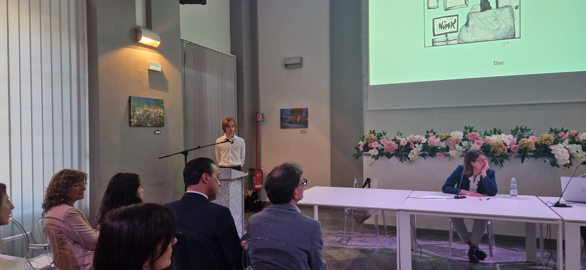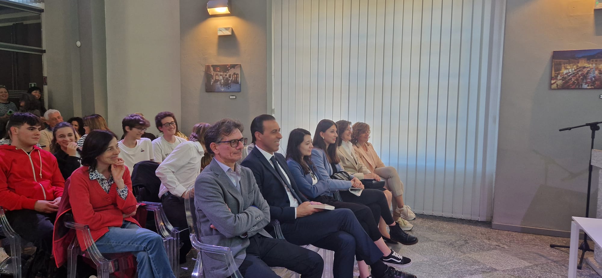 DOMODOSSOLA - 10-5-2024 -- “IntroSPEZioni”, la nuova raccolta di racconti scritti dalle alunne e dagli alunni della 2°, 3° e 4° del liceo classico Spezia è stata presentata in ex Cappella Mellerio. Dopo la “prima assoluta” del 24 aprile alla Fabbrica di Carta, il nuovo libro di racconti del progetto Speziabook è stato presentato nel capoluogo ossolano alla presenza anche del sindaco Lucio Pizzi, della moglie e delle figlie di Pierantonio Ragozza, il loro amato preside, recentemente scomparso. In apertura sono stati rivolti pensieri e parole riconoscenti al dirigente Ragozza, primo convinto sostenitore del progetto. Così la vicepreside Michela Tantardini: «Ci sembra di vivere una dimensione surreale senza il nostro preside che sarebbe stato ospite d’onore. Tutta la comunità del liceo Spezia si trova come una nave senza timoniere, che ha imboccato una rotta e la prosegue calcando le sue orme ma con una grande tristezza nel cuore». Il libro è a cura delle professoresse Anna Brambati e Danila Tassinari. Referenti del progetto Michela Tantardini e Danila Tassinari. «I ragazzi hanno accolto con entusiasmo e sincerità questo progetto – spiega Danila Tassinari – che ha dato loro la possibilità di scrivere in prima persona quest’anno un racconto che avesse per protagonista un ragazzo o una ragazza della loro età». Per i ragazzi una bella sorpresa: quando è stato ospite della Fabbrica di Carta, il noto scrittore Alessandro Robecchi, ha ricevuto in omaggio dagli autori di “IntroSPEZioni” una copia del loro libro. Alla presentazione, ieri sera in Cappella Mellerio, Robecchi ha fatto pervenire un messaggio in cui, si complimenta con loro del libro, da lui letto e apprezzato. La prossima presentazione di “IntroSPEZioni” sarà il 9 giugno al castello di Vogogna.