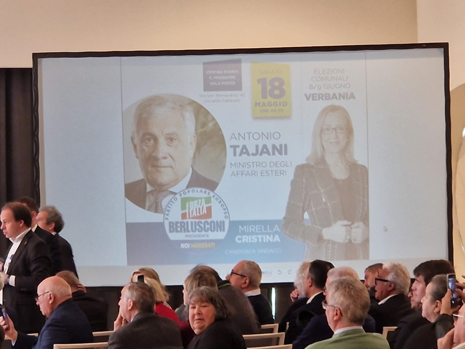 VERBANIA – 18-05-2024 -- Un asse Roma-Torino-Verbania che guarda verso l’Europa. È questa la promessa con cui Antonio Tajani, vicepremier e ministro degli Esteri, ha promosso oggi la candidatura a sindaco di Verbania di Mirella Cristina.