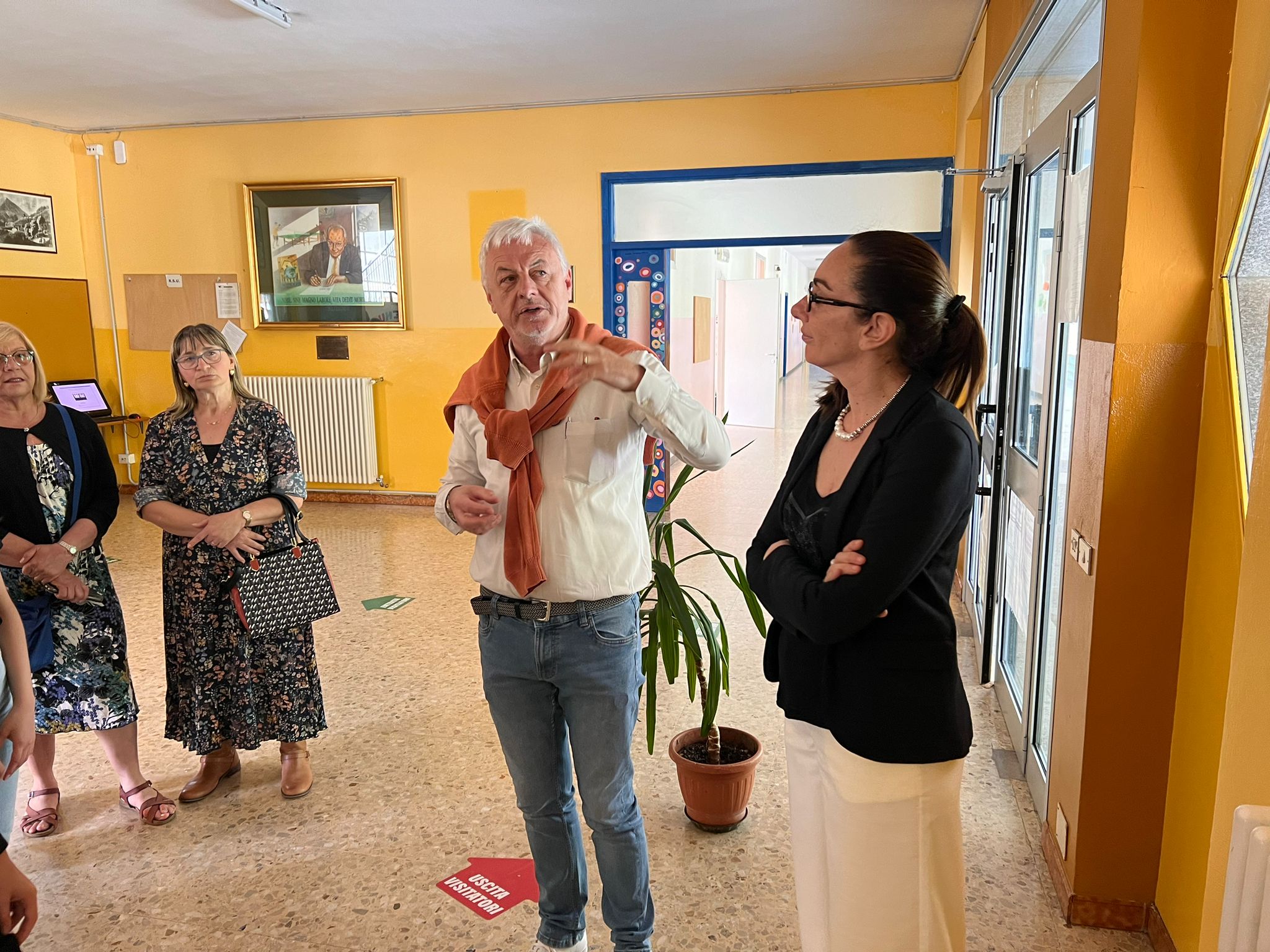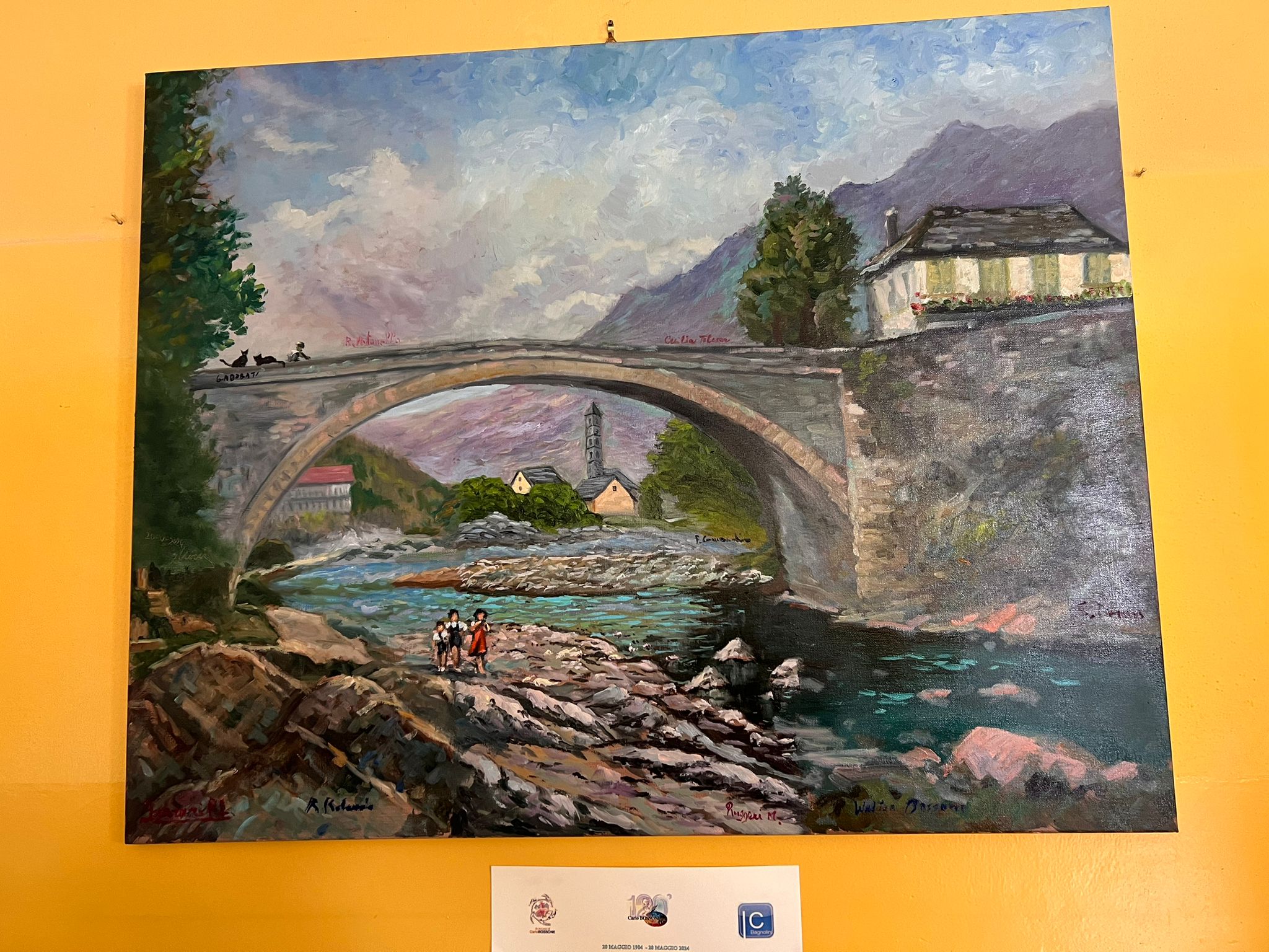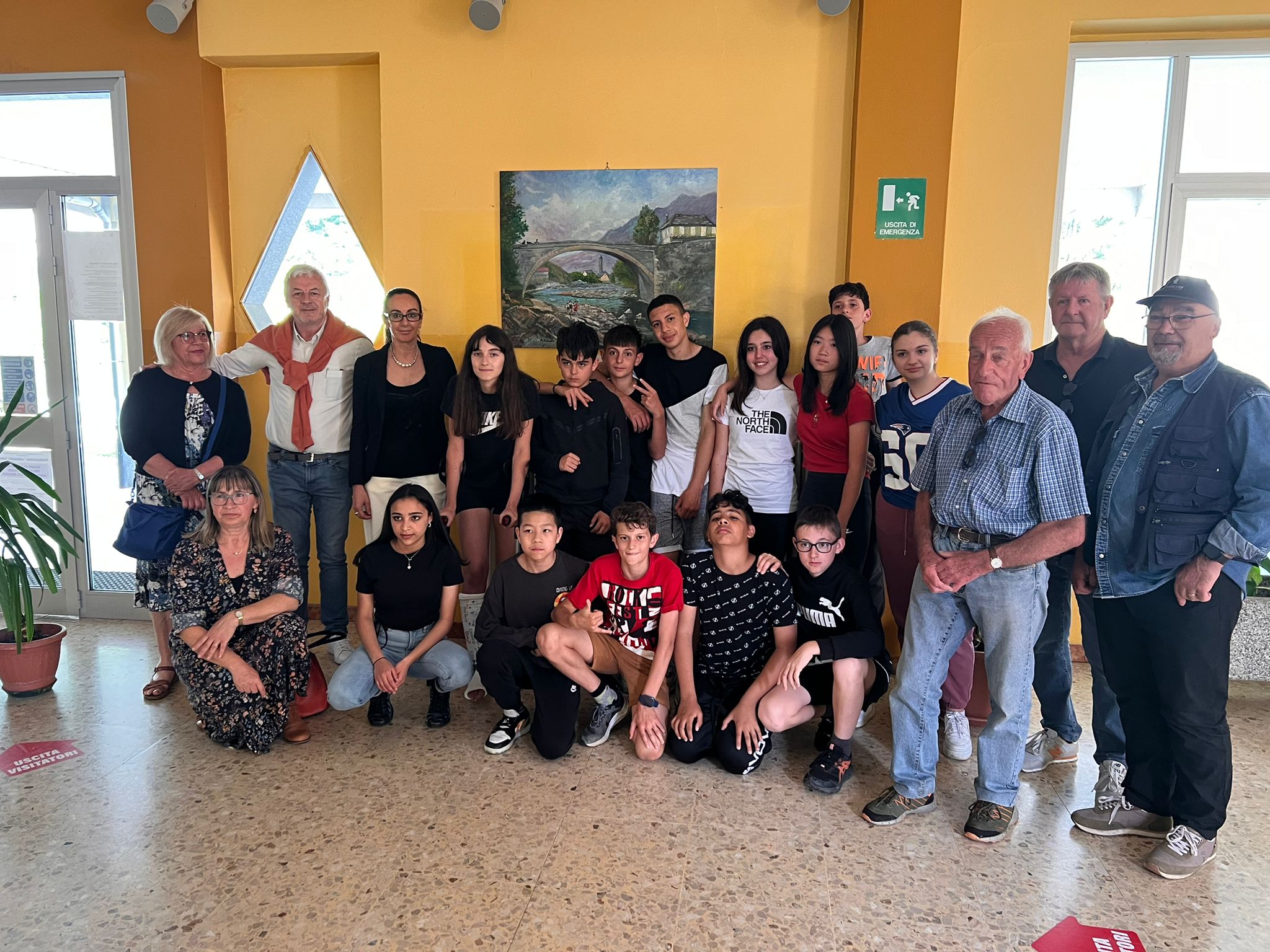 VILLADOSSOLA - 7-6-2024 -- Giovedì 6 giugno si è svolta all’Istituto Comprensivo Bagnolini di Villadossola la cerimonia di consegna di un quadro realizzato a più mani dai pittori allievi e seguaci di Carlo Bossone. Presenti i nipoti del famoso pittore e alcuni autori. L’idea è nata da una vecchia foto, si sono chiesti come avrebbe dipinto Carlo e hanno diviso la tela in più sezioni, ognuno ha lavorato su un riquadro. Il Dirigente Scolastico Dott.ssa Stefania Rubatto ha ringraziato i presenti per il quadro regalato e si auspica di vedere presto un’opera realizzata dagli alunni della scuola. Prossimamente il quadro andrà all’asta, ma non sarà spostato dalla scuola, il ricavato andrà all’Istituto Bagnolini per supportare le attività dei ragazzi che rappresentano il futuro.