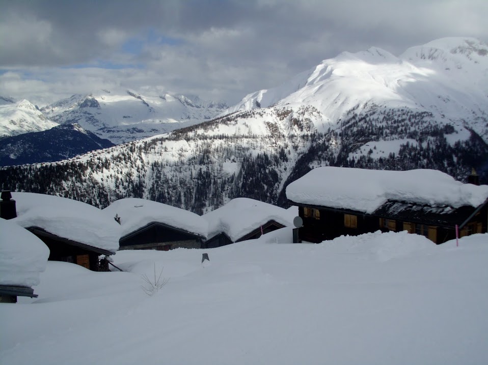 Nuvole, nevischio ed un venticello tagliente non incoraggiano a fermarsi. Proseguiamo fino a Wintrigmatte, 2050, dove termina la strada asfaltata, sommersa oggi da più di due metri di neve. Da qui in avanti si procede in ordine sparso. Perché? Perché ci sono in gioco attrezzature diverse, energie diverse, urgenze diverse e così via.