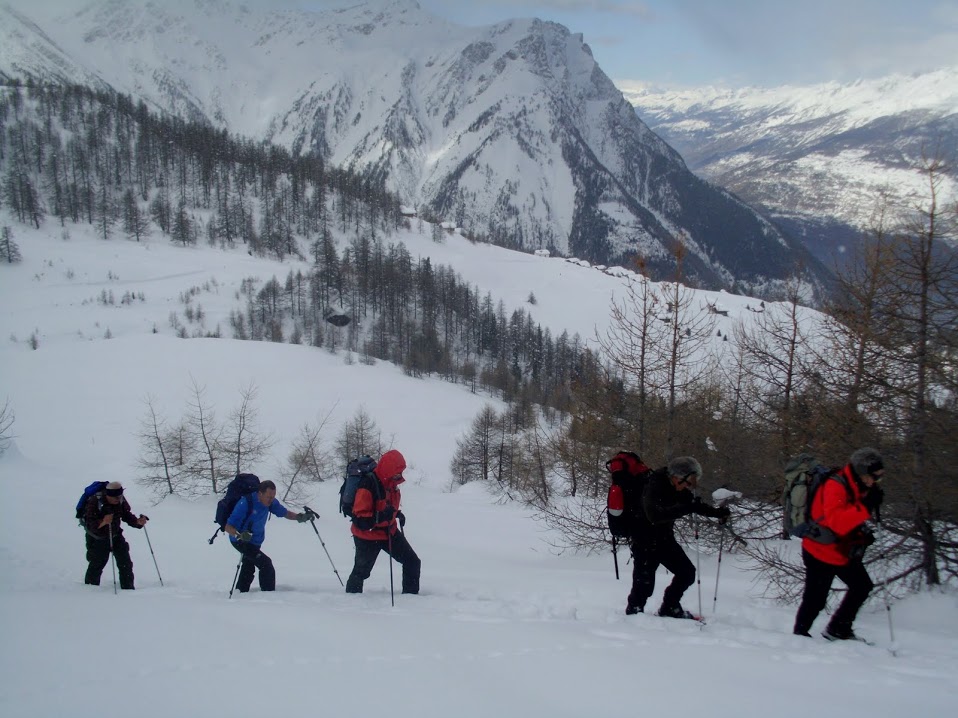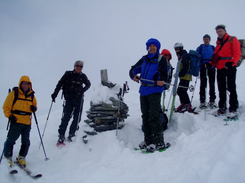 Gli anziani oggi sono in dodici, cinque sciatori (parola grossa per qualcuno!) e sette ciaspolatori. Fra i primi c'è anche un fuoriclasse, che eleva decisamente il tasso tecnico medio, bilanciato, però, da quello scadente di un suo parente acquisito.