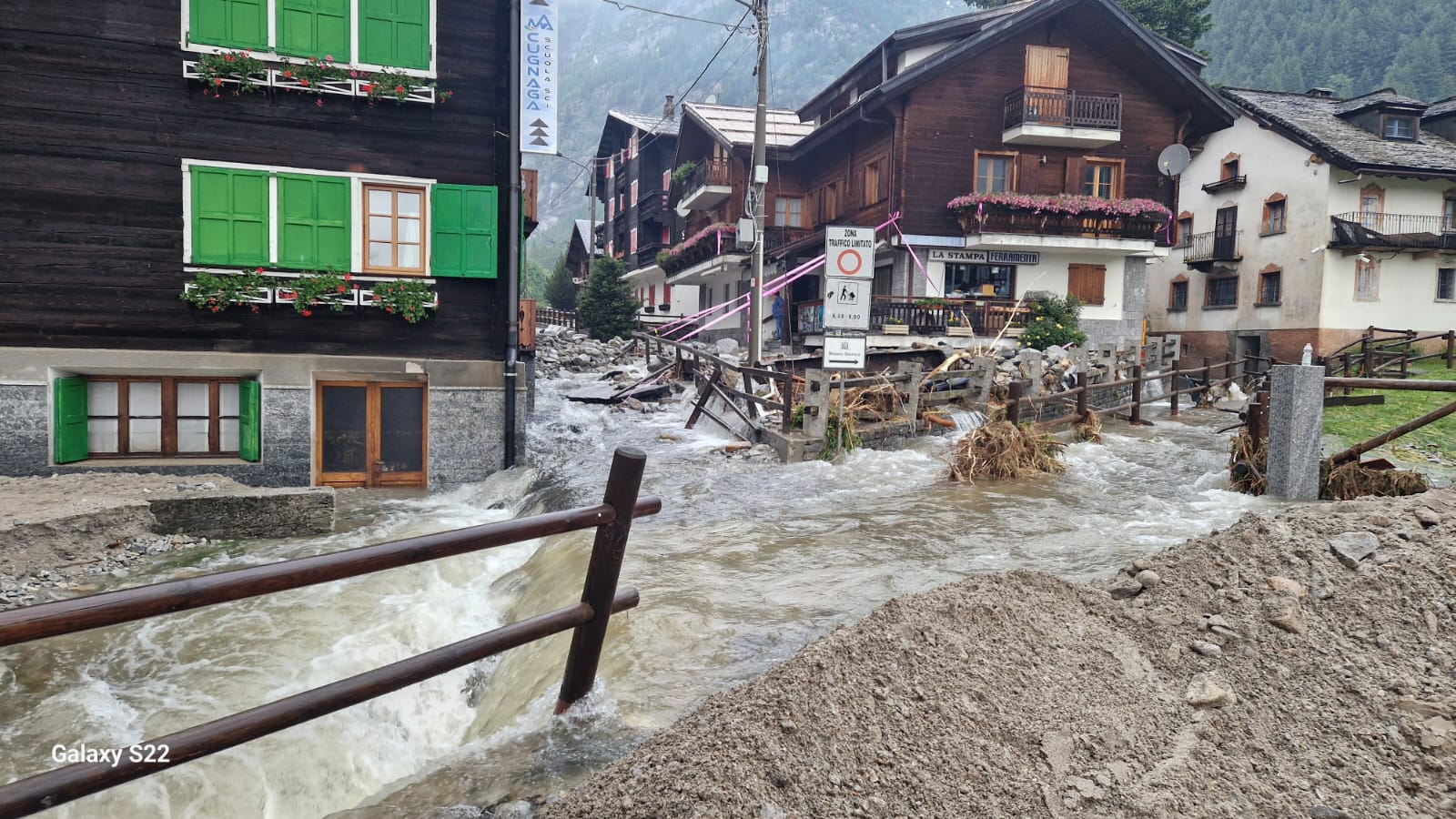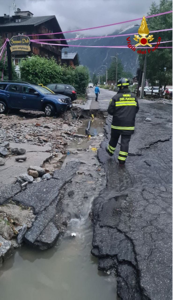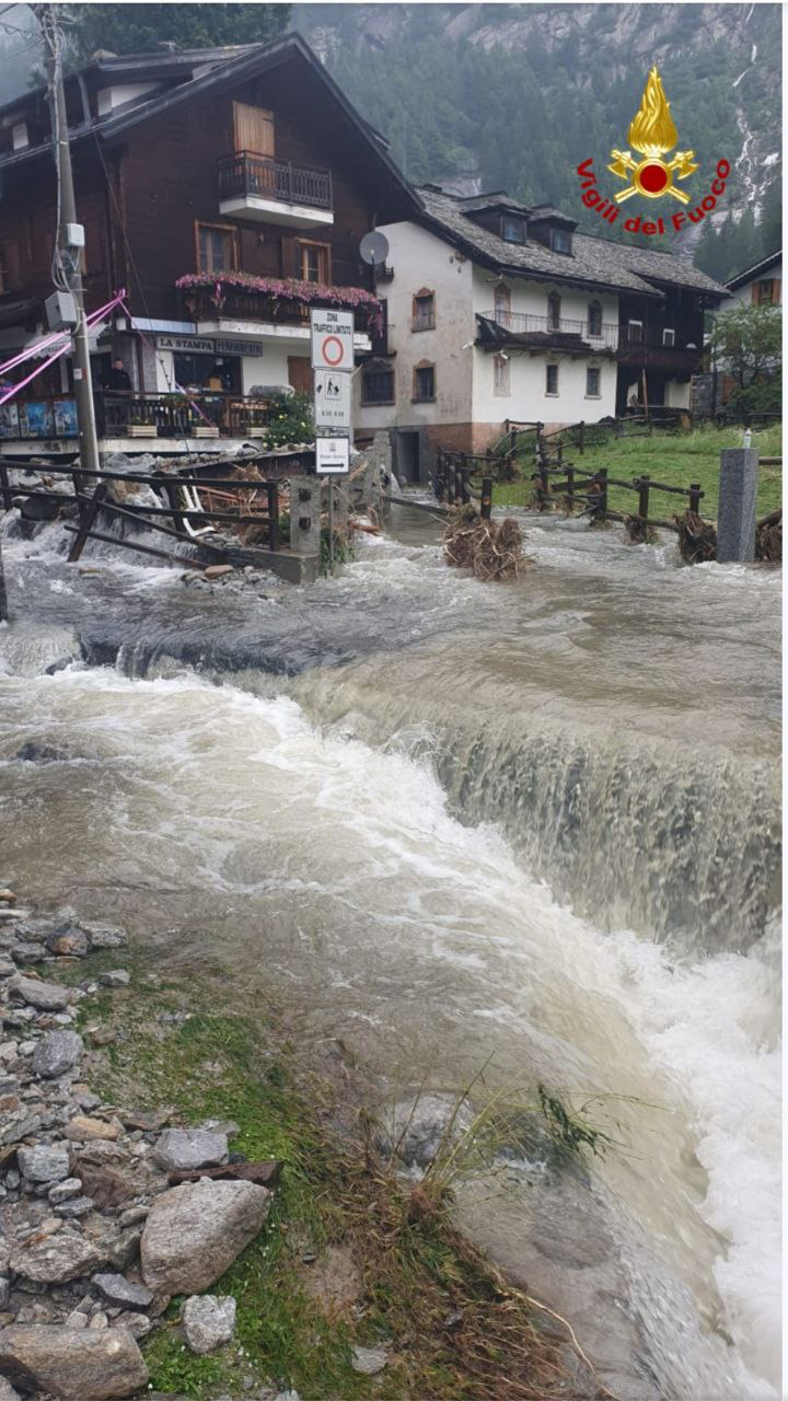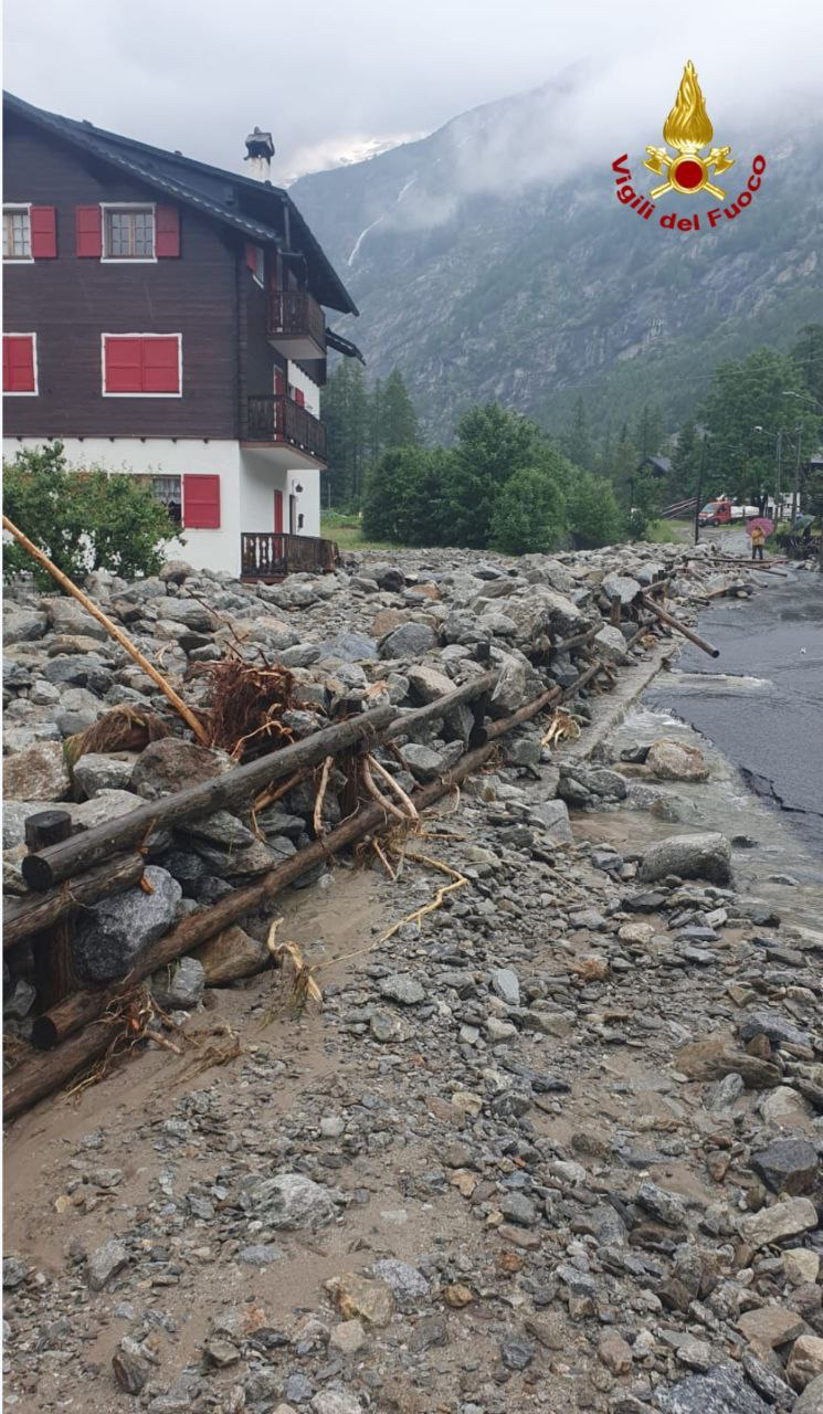 MACUGNAGA- 30-06-2024-- Sono impressionanti le immagini che giungono dal centro di mcugnaga, dove è esondato il rio Tambach riversando detriti e fango ovunque.