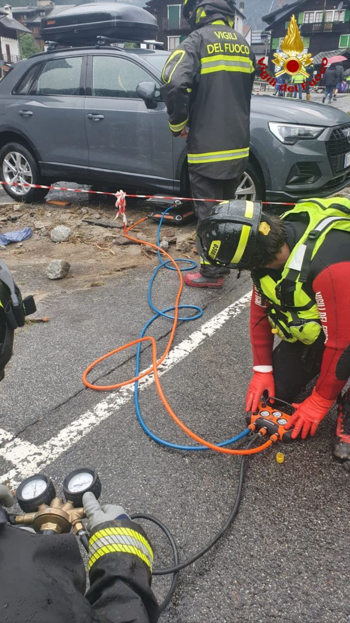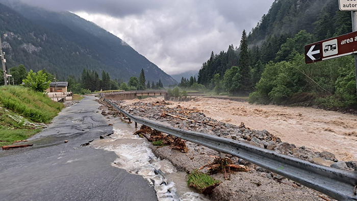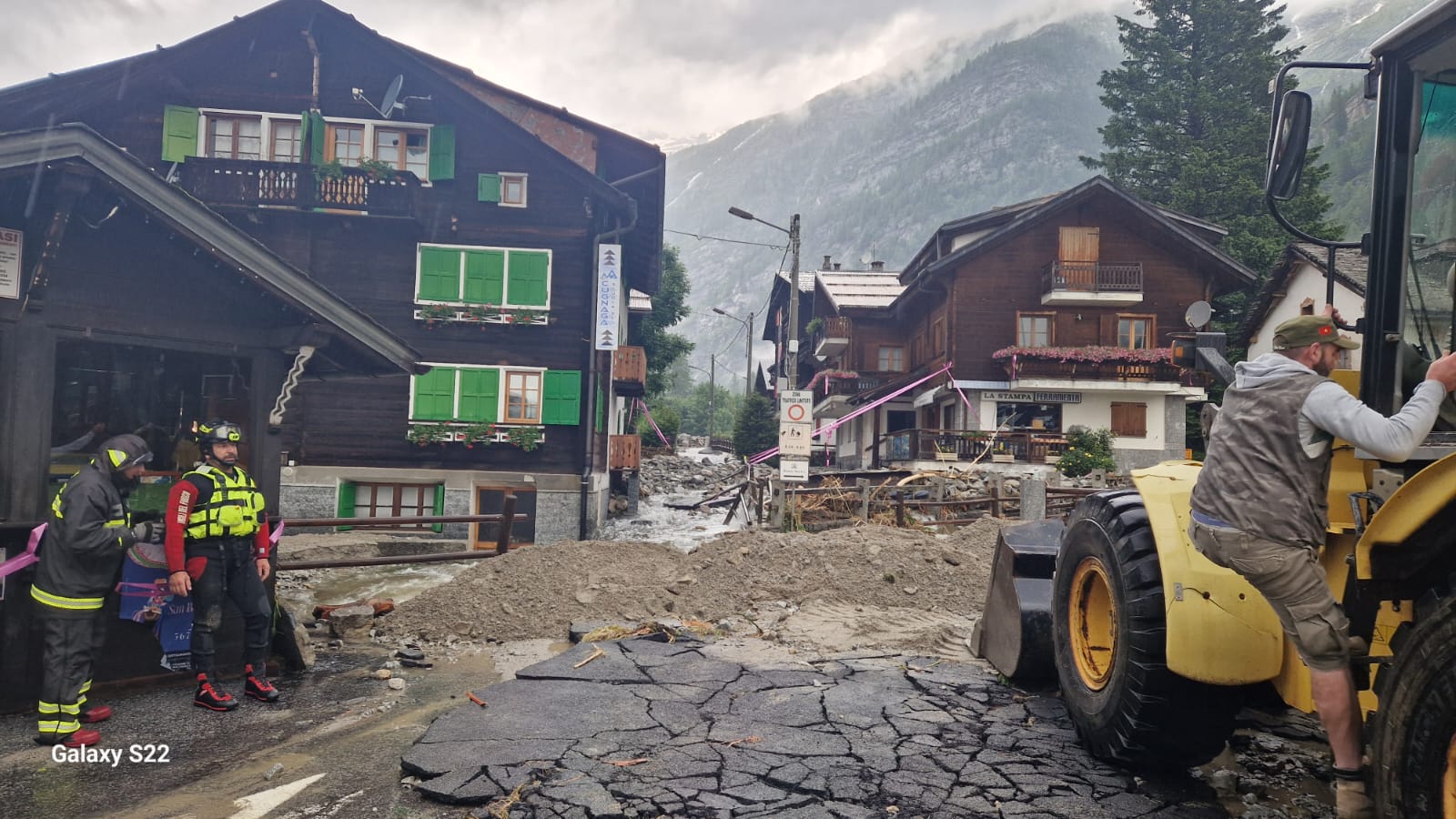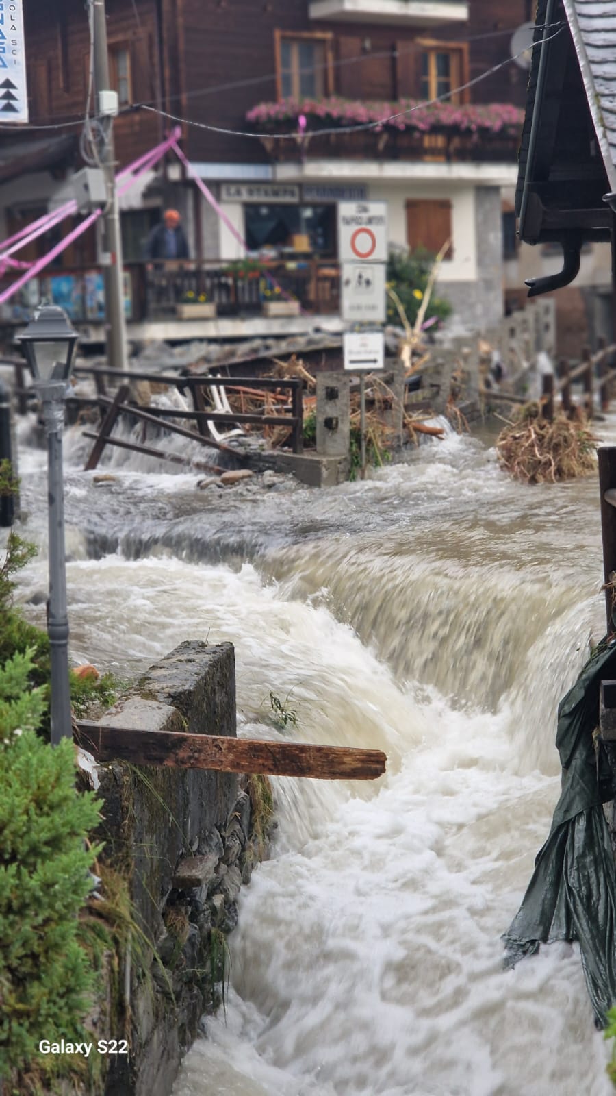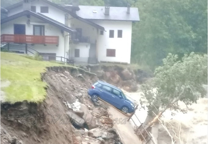 MACUGNAGA- 30-06-2024-- Sono impressionanti le immagini che giungono dal centro di mcugnaga, dove è esondato il rio Tambach riversando detriti e fango ovunque.