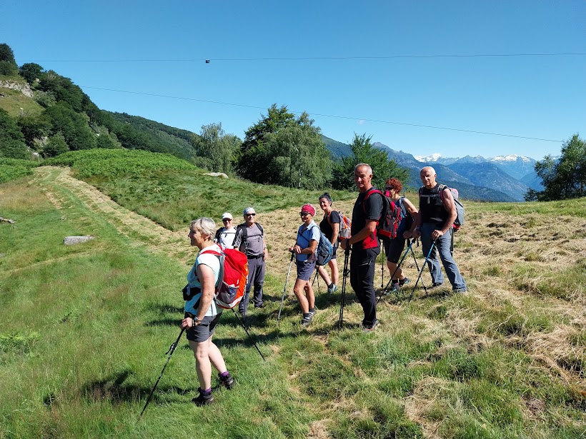 Due giorni prima della gita, che avrei voluto breve e di tutto riposo, il medico di turno che ci accompagnerà mi propone la ripida ascesa al Pizzo Castello, nonostante il mio stato di forma ancora peggiore del solito dopo una vacanza dedicata al cibo e al baby-sitting. Mi promette, il dottore, un passo molto tranquillo ed un’assistenza medica ancora più accurata del solito. Ed è così che cedo miseramente e ci si trova per il caffè a Piedimulera, in una splendida e già calda giornata di luglio. Per fortuna è presente al completo lo staff badanti (quattro), oltre al medico. Si occuperanno di quattro più o meno anziani, uno dei quali al rientro in gruppo dopo una interminabile stagione sci alpinistica. Saliamo a Cimamulera, in località Madonna, 550, minimizzando le auto e posteggiamo. Si sale subito, prima su strada e poi sul ripido sentiero A51, ben segnato fino in vetta. A occidente la Est del Rosa, finalmente bianca come dovrebbe essere sempre un quattromila, domina la scena. Dopo l’Alpe Cascinaccia, 800, passiamo dall’Alpe Sarcera, 886, ed arriviamo all’Alpe Ceresole, 953, dopo poco meno di un’ora. Sostiamo brevemente prima di passare dal fresco del bosco al caldo del sottobosco nel quale camminiamo per una mezz’oretta fino ai bellissimi pianori dell’Alpe Propiano, 1134. Non mi stanco di ripetere che questa dorsale soleggiata fra Ossola e Anzasca è una delle meraviglie del nostro territorio. Oltre ai monti ancora innevati di Anzasca ed Antrona, lo sguardo scorre da nord a sud sul Verbano Cusio Ossola. Dopo il tratto pianeggiante, una leggera salita porta a Propiano Sopra, 1200 circa, ai piedi della Testa del Frate, 1258. A quota 1320, all’Alpe Castello, pausa colazione (mezz’ora). Mentre noi ci godiamo la giornata in compagnia, accumulando energia positiva per la settimana impegnativa che, come sempre, ci aspetta, a brevissima distanza si sta consumando una tragedia assurda. Vediamo un elicottero che vola dalle parti dell’Alpe Droccala, ma sapremo solo alla sera della giovane madre caduta da una teleferica sotto gli occhi della famiglia. Si tira il fiato prima del ripido tratto nel bosco di faggi, dal quale si esce attraversando in direzione nord ovest l’erto pendio, in mezzo ad una splendida fioritura di ginestre. In poco più di mezz’ora, preceduto di poco dai pazienti amici sempre in gran forma, sono in vetta, 1607. Anche qui la grande croce di vetta illuminata di notte grazie ai pannelli solari. Il sole “picchia” davvero, ma l’arietta fresca del Rosa ci consente di pranzare anche senza ombra. La pausa è lunga. Qui non ci si stanca mai di guardarsi intorno. Quando si parla del ritorno, vista l’ora e le promesse fatte all’anziano grafomane, si opta per la via più breve che è quella percorsa in salita. Un’altra lunga pausa all’Alpe Castello e poi Propiano, Ceresole, Sarcera. Cascinaccia e Cimamulera (due ore). La reidratazione doverosa, come sempre da queste parti, è al bar di Piedimulera.