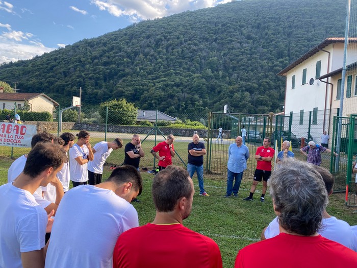 VERBANIA - 04-08-2024 - - È iniziata venerdì al campo sportivo di Renco la stagione del Verbania calcio. Il club biancocerchiato, che sul finire del passato torneo ha cambiato presidenza e proprietà, si presenta ai nastri di partenza del campionato di Eccellenza con rinnovate ambizioni. L’ha detto alla squadra il presidente Andrea Piazza, presente al primo allenamento insieme al ds Marco Magni e alla dirigenza.