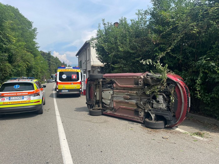 OGGEBBIO - 01-09-2024 -- La strada statale 34 del Lago Maggiore è bloccata dal primo pomeriggio di oggi a causa di un incidente stradale. All’inizio di Oggebbio una vettura di turisti svizzeri con targa di Zurigo s’è ribaltata, fermandosi a bordo carreggiata, adagiata su un fianco. Illesi i quattro occupanti. Sul posto i vigili del fuoco e il 118 oltre alle forze dell’ordine.