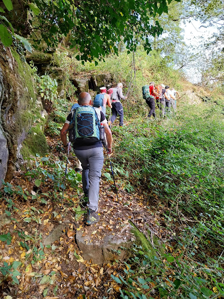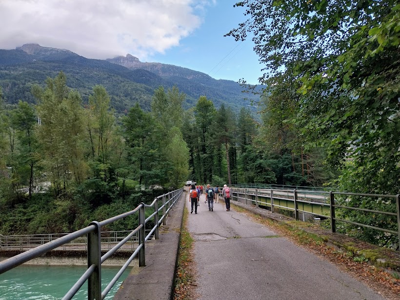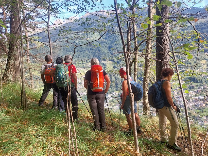 Come ormai spesso, le previsioni ci inducono a portare gli ombrelli negli zaini. E questa sta diventando la più certa garanzia che di pioggia non ne vedremo. Solo nuvole alte. La temperatura è ideale per camminare. Dopo lunghe ferie rientrano nei ranghi due medici di servizio, uno dei quali è l’ospite e il festeggiato di oggi. Con loro le quattro badanti accompagnano tre anziani.