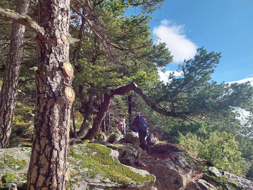 Dopo un’ora e mezza siamo nel bellissimo paesino che merita una breve deviazione ed una visita fra le case. Torniamo sui nostri passi e proseguiamo sul sentiero per Jeizinen, ora diretti ad oriente. Entriamo in un bosco bellissimo, con tanto muschio che farebbe felici i progettisti di presepi tradizionali, nonostante l’esposizione a sud. Anche la nostra guida professionista svizzera, pur aiutato dalla tecnologia, incontra qualche difficoltà in questo tratto di sentiero che non è più molto frequentato, non è ben indicato e ci sono tracce di pedoni, di ciclisti e di animali che si sovrappongono.
