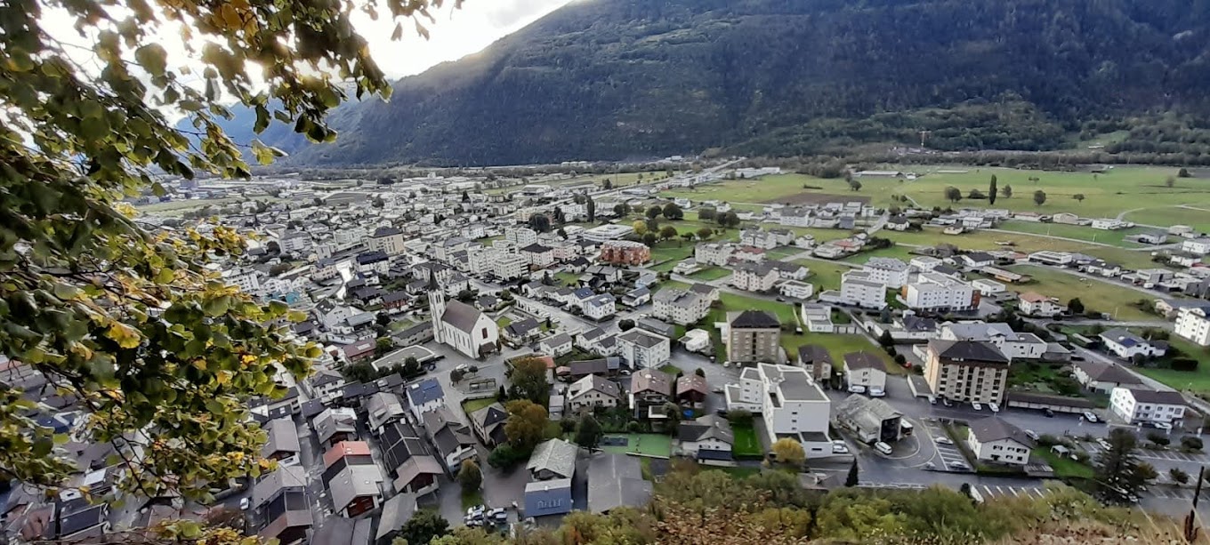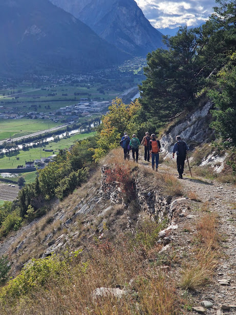 Dopo pochi minuti ci gustiamo il primo panorama sulla valle del Rodano da una cappella nei pressi di una croce che viene illuminata solo in occasione di una morte nel paese, per una vecchia tradizione. Più avanti lasciamo la pista diretta per Jeizinen e imbocchiamo il sentiero per Bratsch, sempre diretti ad occidente.