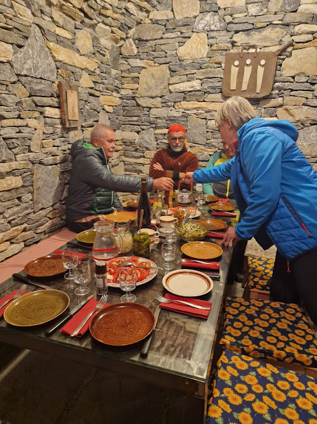 Anche in salita questa pista avrebbe ridotto tempi e fatica, ma arrivare troppo presto sarebbe stato pericoloso per la pur ben fornita cantina degli amici e ci avrebbe tolto quel pizzico di avventura che fa sempre parte delle nostre escursioni. Varchiamo il confine quasi all’ora di cena, ma una giornata così avrebbe meritato anche orari notturni.