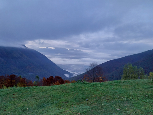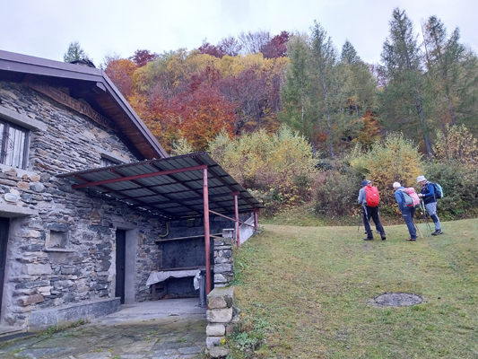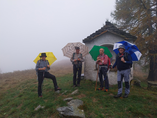 VAL BREVETTOLA- 03-11-2024-- Il campo base a quota 1300 e la possibilità di arrivarci in auto grazie a una grande vettura e ad un abile autista ci consentono una tranquilla escursione, a tratti sotto la pioggia. E questo nonostante le ormai consuete catastrofiche previsioni meteorologiche, in particolare di giovedì. Certe cose si possono fare anche con brutto tempo, anzi …..