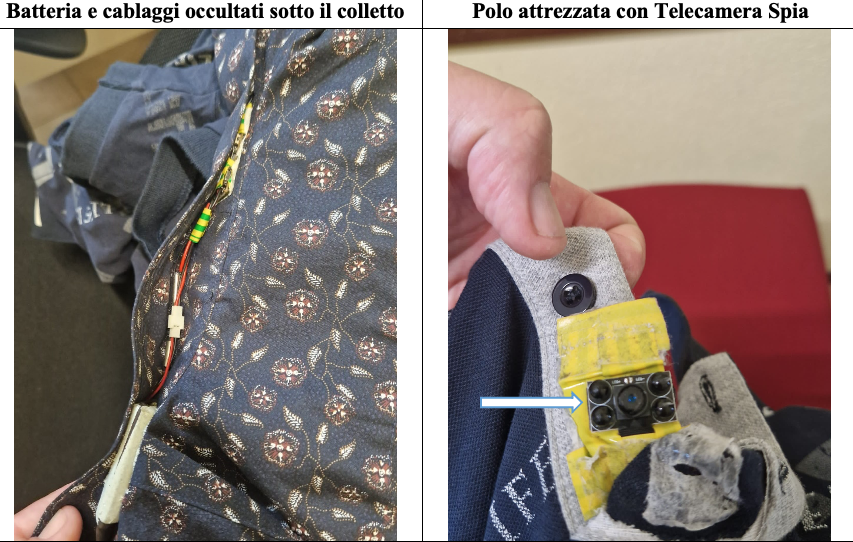 Nelle diverse perquisizioni personali e locali eseguite sono stati sequestrati 14 telefoni cellulari, 9 modem video/audio, 6 auricolari, 6 micro telecamere, 15 capi di abbigliamento già attrezzati con i dispositivi tra cui microtelecamere già installate ed occultate nei bottoni, decine di batterie per l’alimentazione dei dispositivi, 12.000 € in contanti nonché una pinzetta per l’estrazione dei micro auricolari.