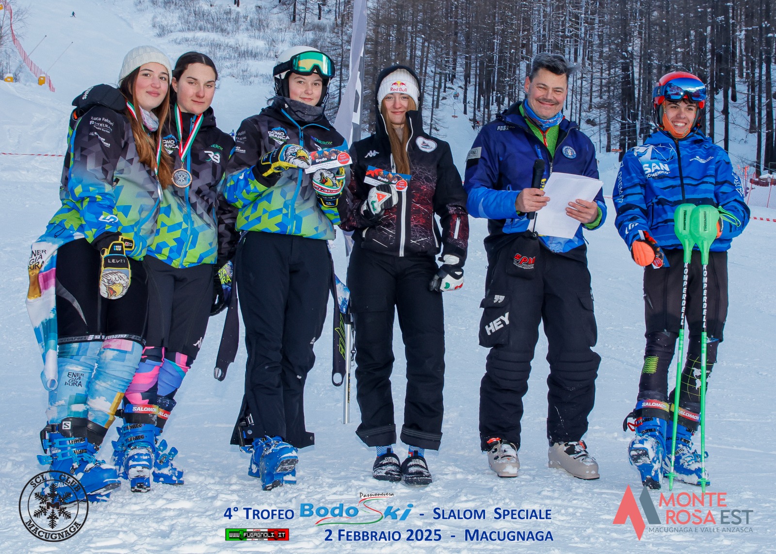 Nello slalom speciale, tra gli under 14 sul podio femminile troviamo prima e seconda due iscritte allo SC Formazza: Gaia Cervini e Aurora De Nicolo; al terzo posto Camilla Villaraggia del Revolution Ski Race.
