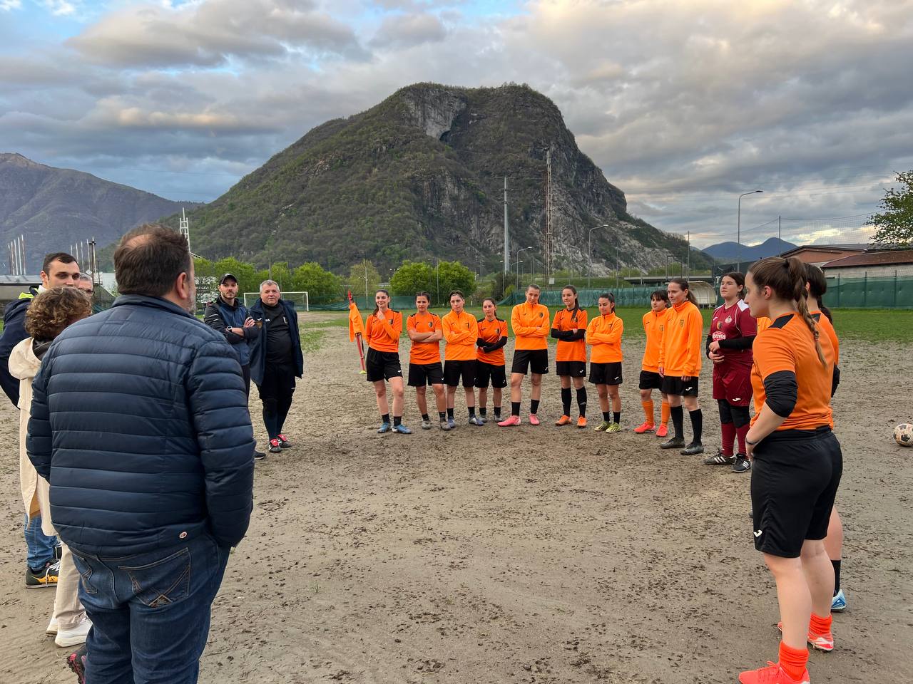 GRAVELLONA TOCE - 19-4-2025 -- Venerdì, al campo sportivo Lucchini di Gravellona Toce, si è tenuto un incontro speciale tra la formazione della Promozione femminile dell’A.S.D. Gravellona San Pietro e le istituzioni locali. Presenti l’assessore allo sport Luca Forcina e l’assessore al bilancio Cristina Franchi, che hanno portato anche i saluti del sindaco Gianni Morandi, in un gesto di vicinanza e sostegno alla squadra.