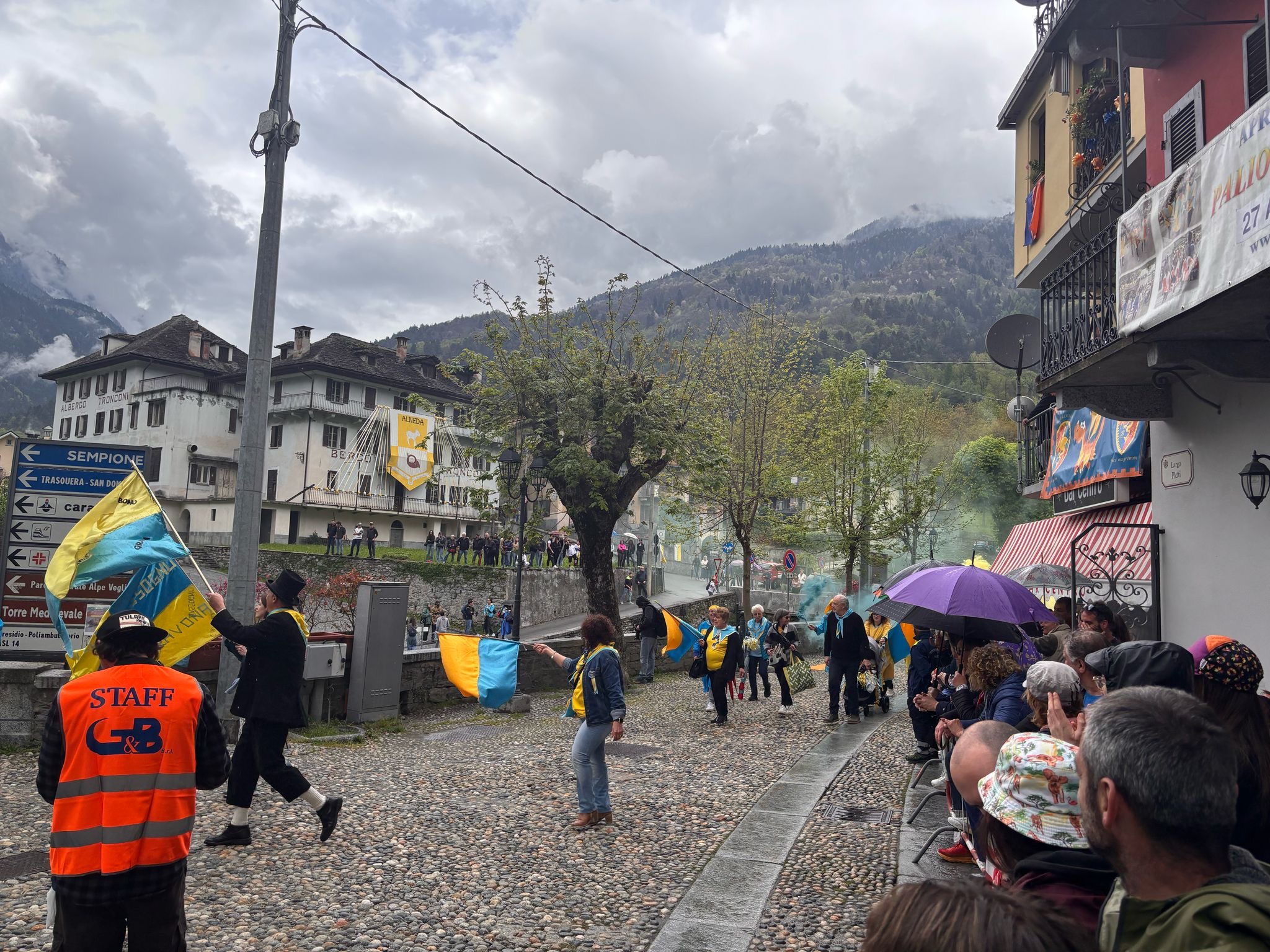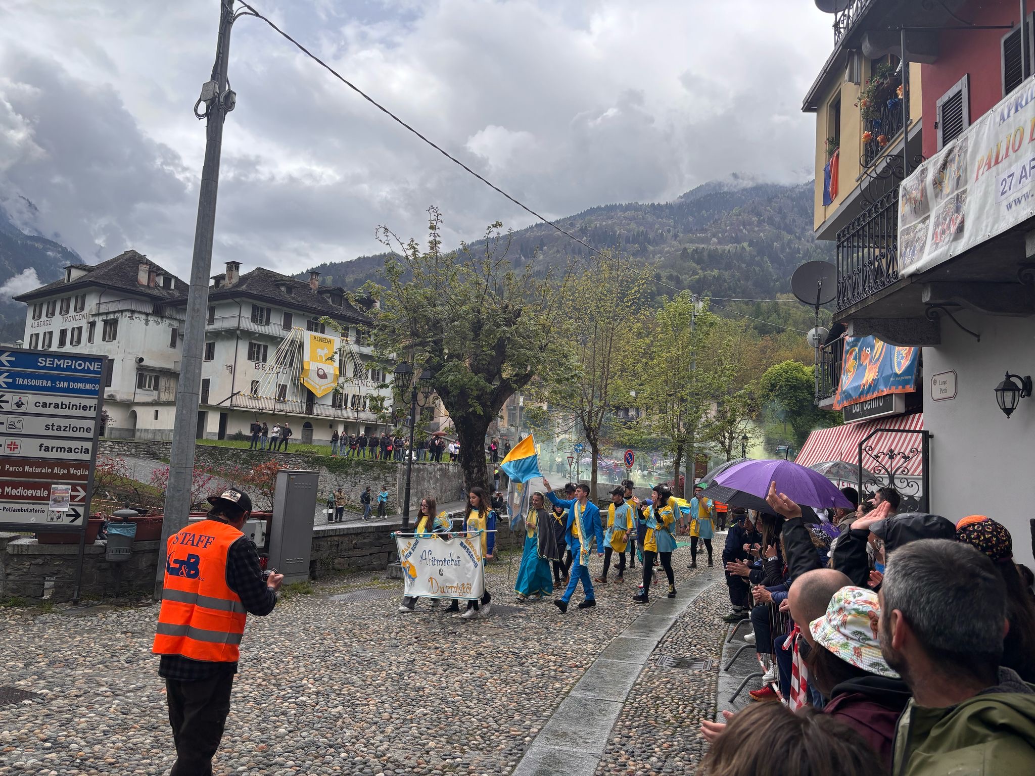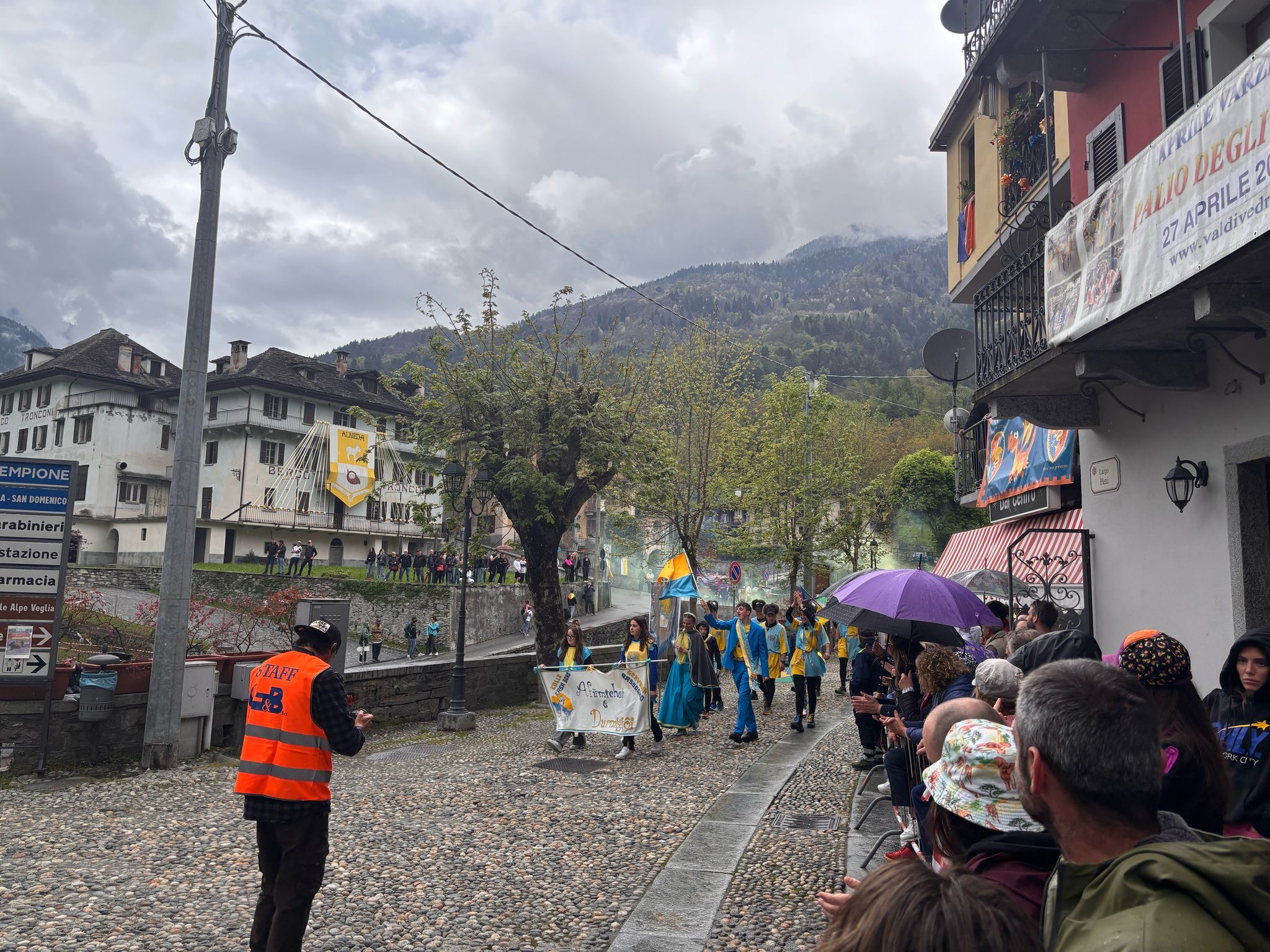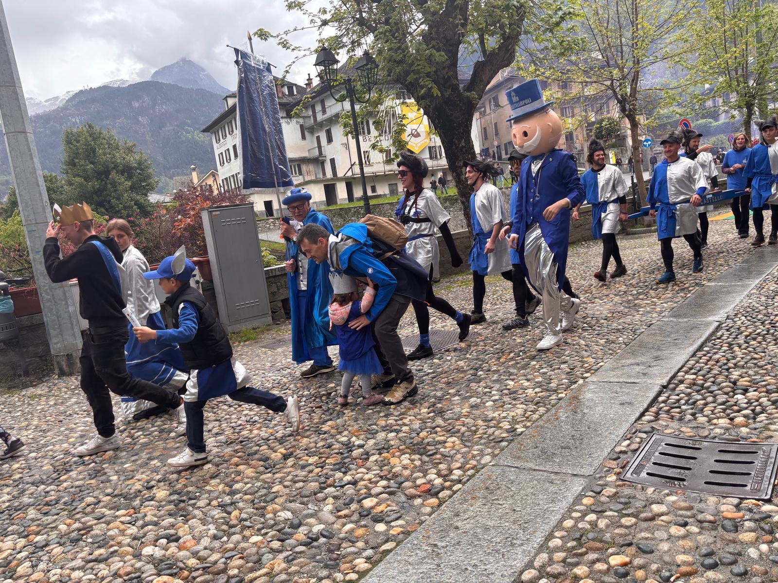 VARZO- 27-05-2025-- In attesa del via al palio degli Asini di Varzo le frazioni in gara hanno sfilato per le vie del paese tra due ali di folla incitante, per niente intimorita da qualche goccia di pioggia. Dopo le ore 17 il via alla competizione, di cui vi renderemo conto in un successivo articolo.