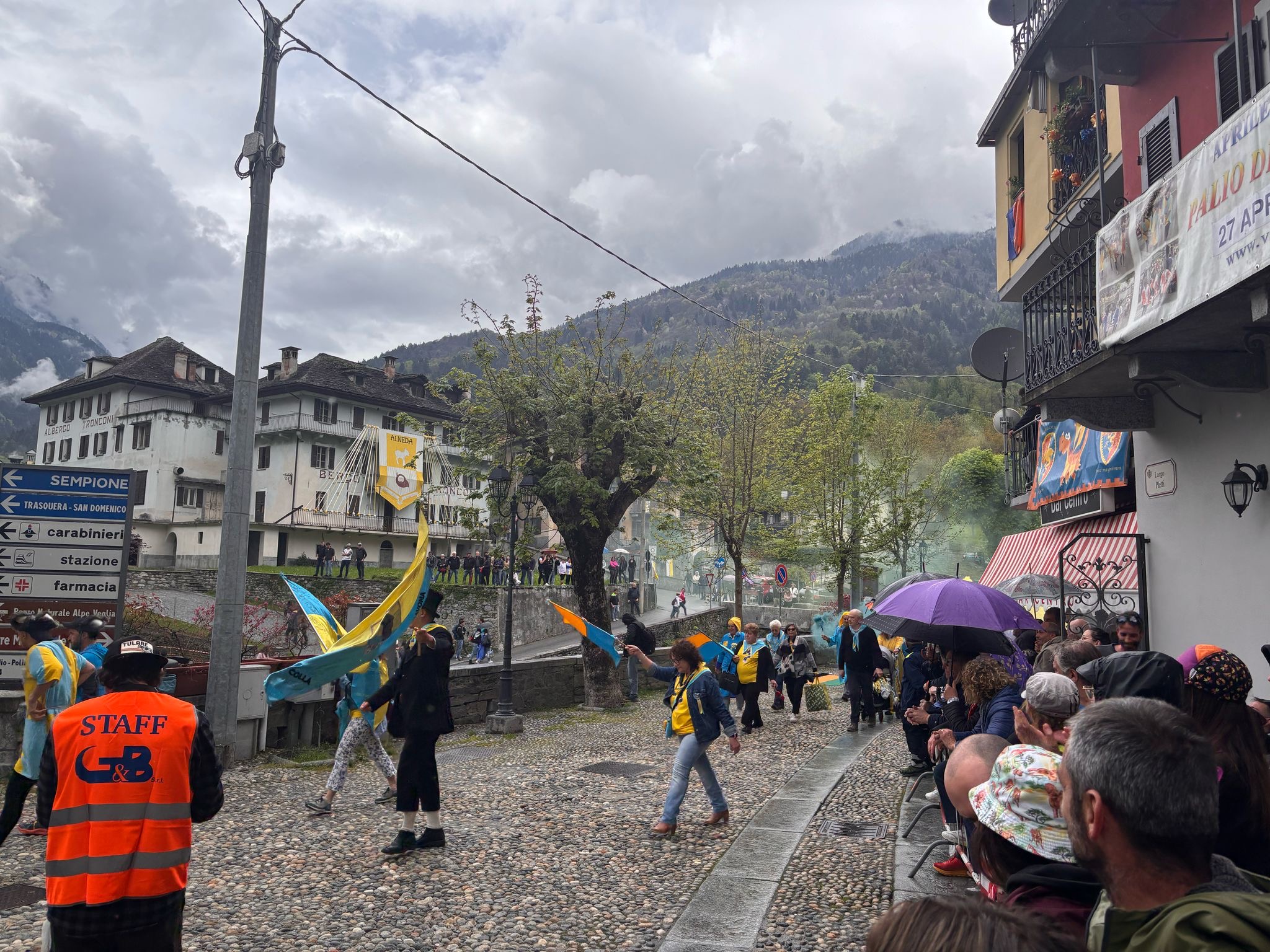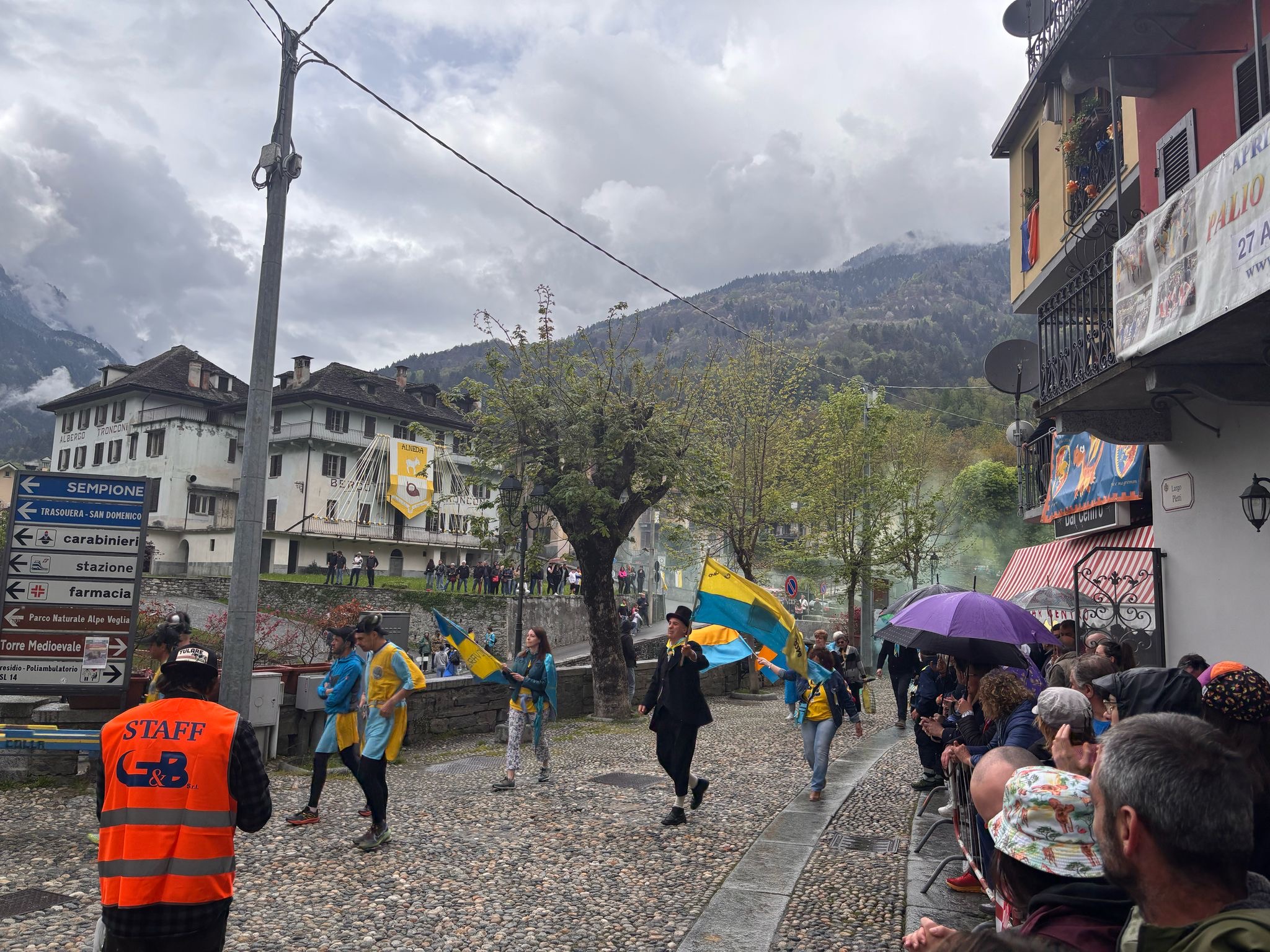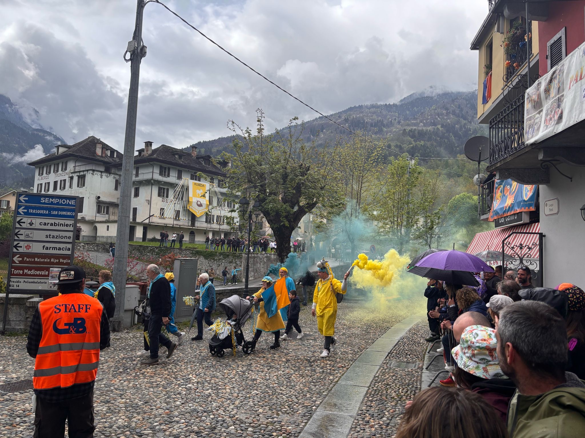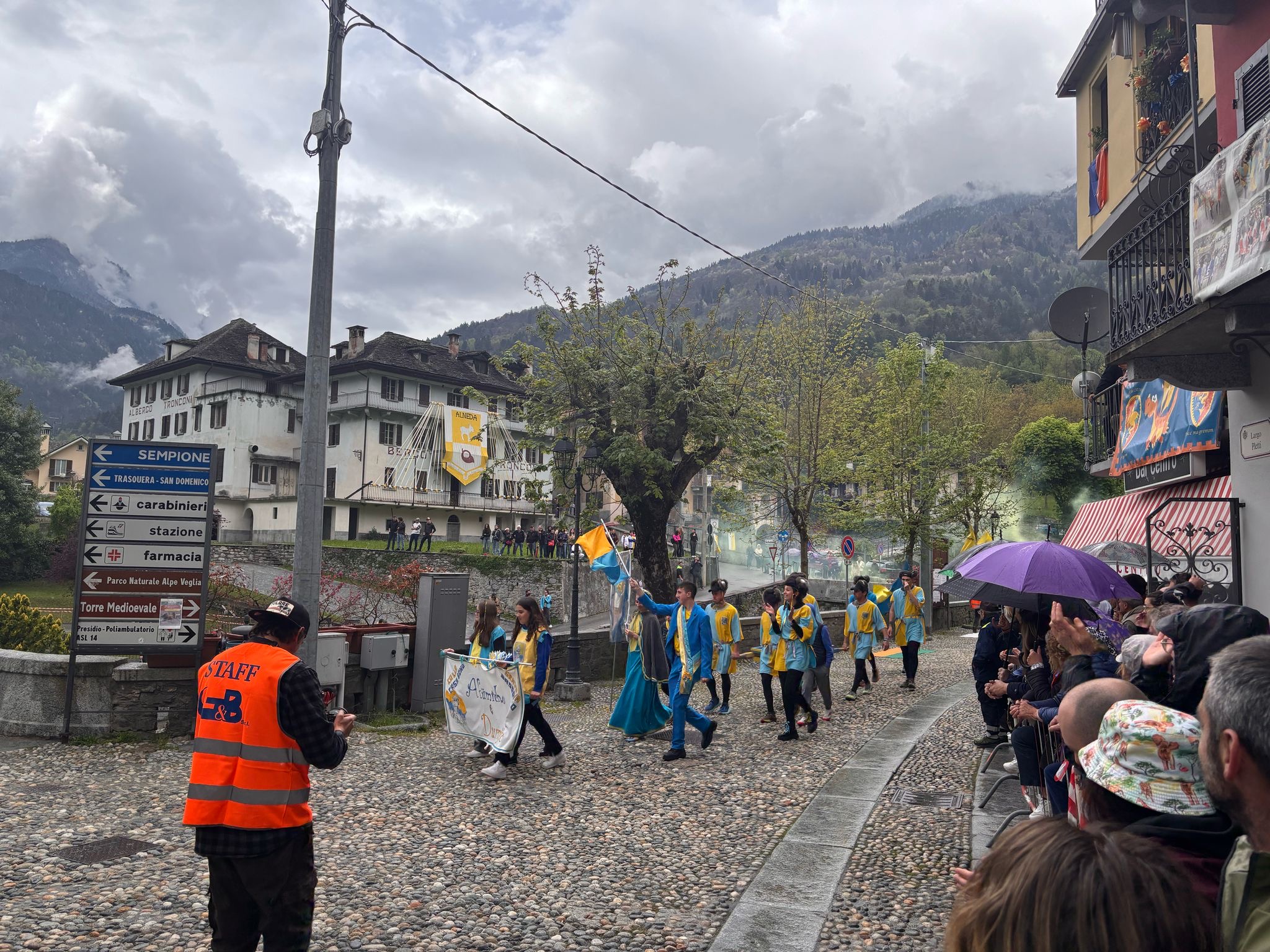 VARZO- 27-05-2025-- In attesa del via al palio degli Asini di Varzo le frazioni in gara hanno sfilato per le vie del paese tra due ali di folla incitante, per niente intimorita da qualche goccia di pioggia. Dopo le ore 17 il via alla competizione, di cui vi renderemo conto in un successivo articolo.