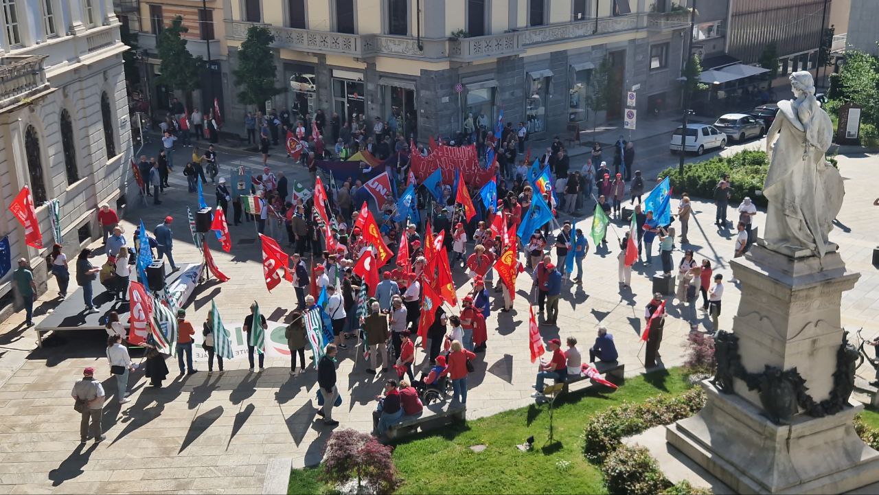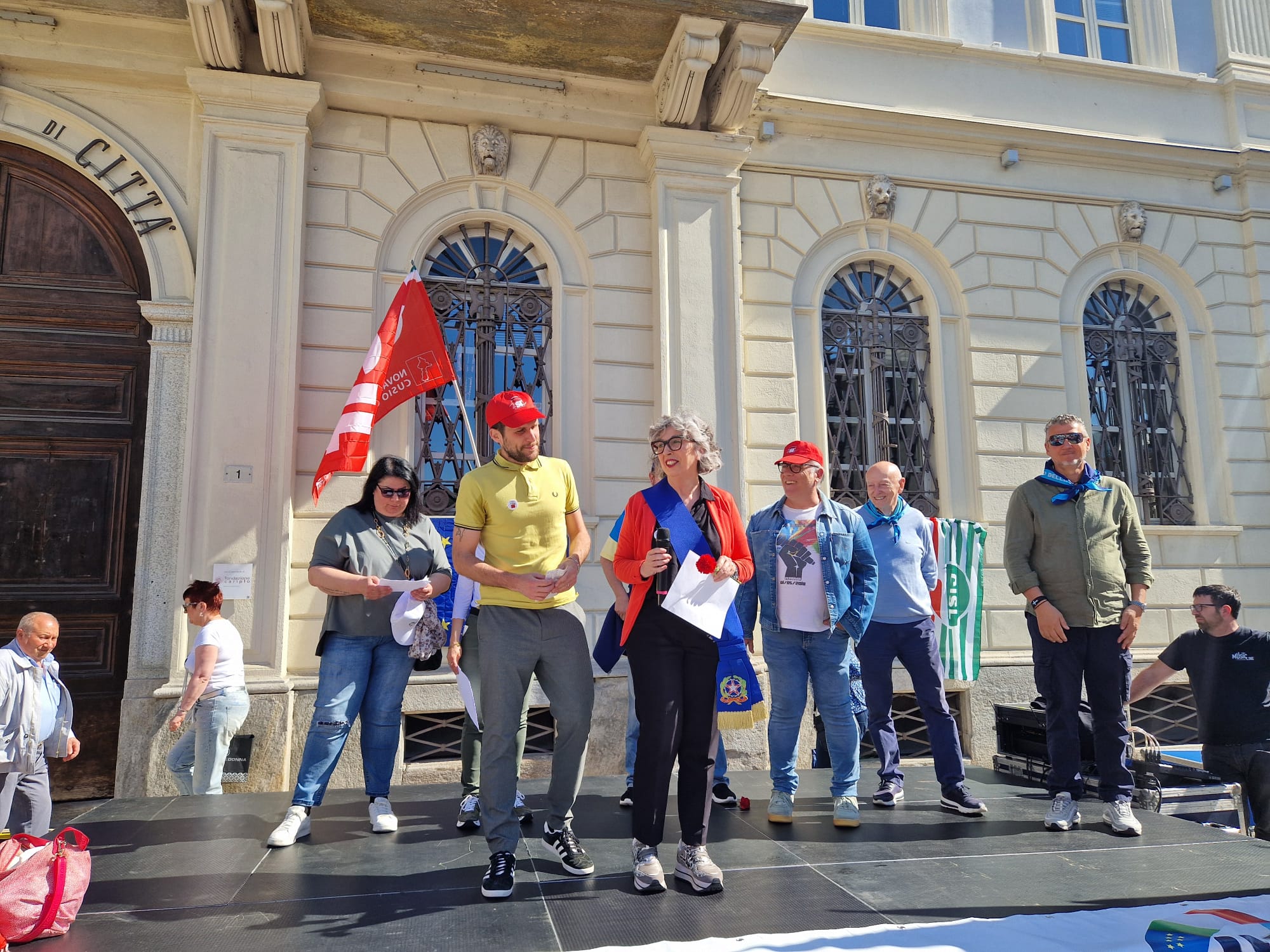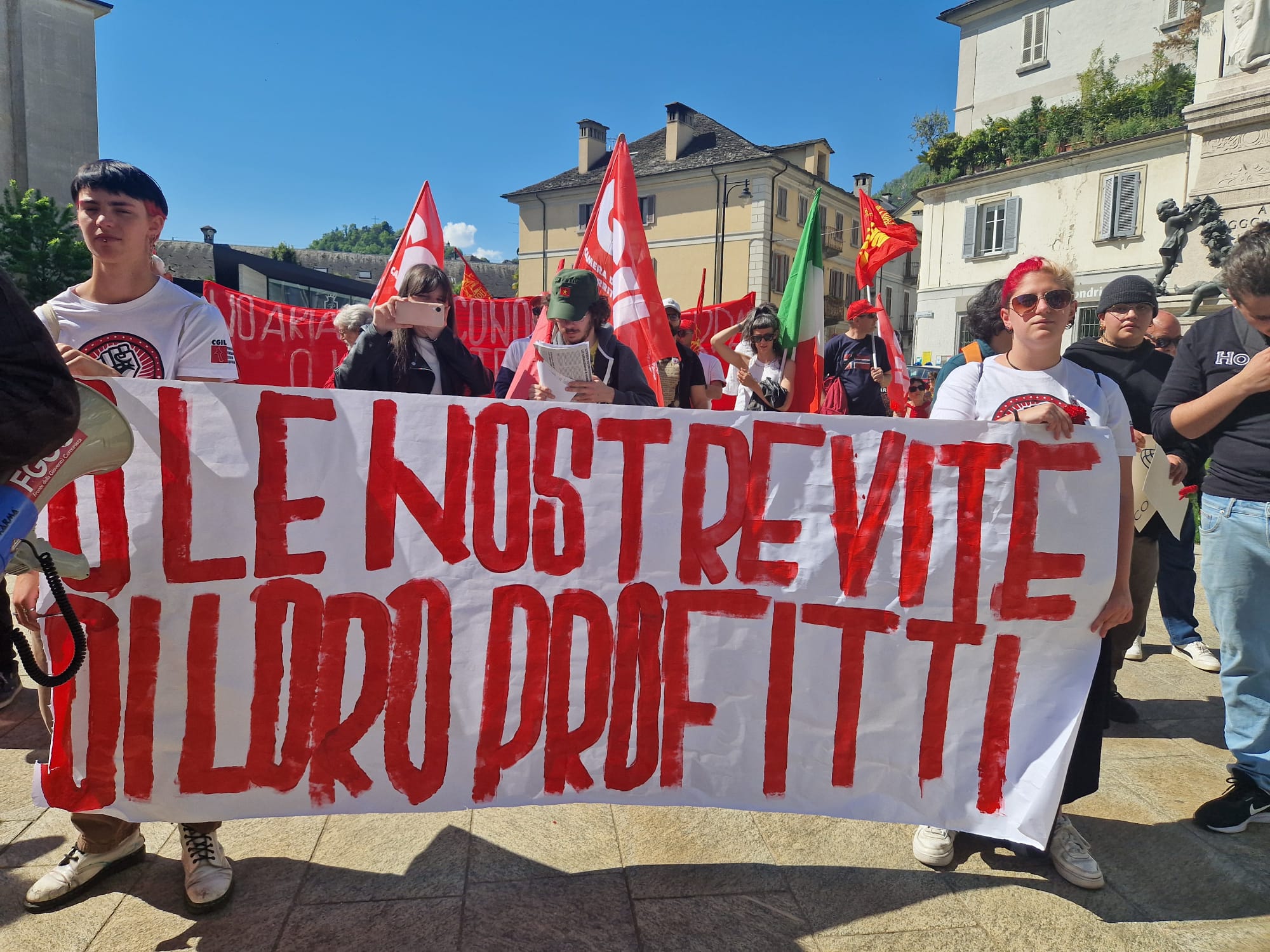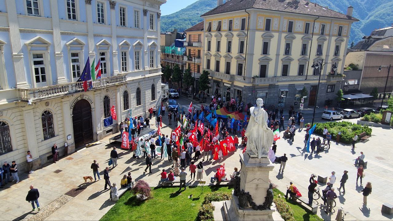 DOMODOSSOLA - 1-5-2025 -- Tanta partecipazione al 1° maggio di Domodossola: le bandiere della Cgil Cisl e Uil hanno sventolato per le vie del centro nel corteo che, dalla Stazione, è giunto davanti al Municipio per i discorsi ufficiali, dove si è notata l’assenza di una rappresentanza del Comune domese. Sul palco sono saliti rappresentanti sindacali e lavoratori che hanno testimoniato le difficoltà del mondo del lavoro odierno. Michele Piffero, segretario confederale Cgil Novara Vco ha fatto da moderatore. «Sicurezza ce n’è sempre meno nei luoghi di lavoro, 3 morti al giorno sabato e domeniche comprese. Nel Vco nel 2024 si sono registrati più di 1400 infortuni e 2 deceduti». Mimma Moscatiello, la delegata del presidente della Provincia del Vco, ha portato i sentiti saluti dell’istituzione. La segretaria generale di Cisl Piemonte Orientale, Elena Ugazio, ha introdotto la giornata. «Il tema della sicurezza sul lavoro è un’emergenza nel nostro Paese» ha detto. Roberto Vittorio (Uil Novara Vco) sottolinea: «Dobbiamo manifestare contro il degrado sui posti di lavoro, ci troviamo con aumento di perdite di vita e malattie professionali». Hanno preso la parola anche Vincenzo Frusteri Chiacchiera (rappresentante Uil Poste), Francesco Sasso (delegato sindacale Filt Cgil) e Rosella Criseo, rappresentante sindacale dello stabilimento della Barry Callebaut di Intra. Le conclusioni sono state affidate ad Alessandro Casellato, segretario generale Uiltec Piemonte, il quale ha voluto sottolineare che «il silenzio assordante delle istituzioni di Domodossola è grave». A conclusione della manifestazione un gruppo di membri del movimento Linea studentesca ha contestato le dirigenze sindacali e Confindustria. La giornata prosegue presso l’area feste della Lucciola di Villadossola che ospita la terza edizione del pranzo del lavoro con grigliate, dj set ma anche un momento per fornire i dati relativi al mercato del lavoro nel Vco.