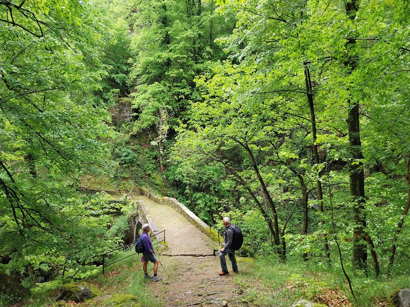 Lungo il sentiero e un brevissimo tratto di strada arriviamo a Montescheno (mezz’ora) e, sulla bella mulattiera che taglia ripetutamente la strada, scendiamo a Cresti. Un buon caffè a casa di amici, un tratto di strada e, dopo il ponte sul Torrente Brevettola, prendiamo sulla sinistra un sentiero parallelo e più alto della strada, che ci porta direttamente al parcheggio ( tre quarti d’ora). Ringrazio la guida per il tragitto di tutto riposo che ha progettato e, soddisfatti, scendiamo a valle.