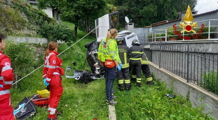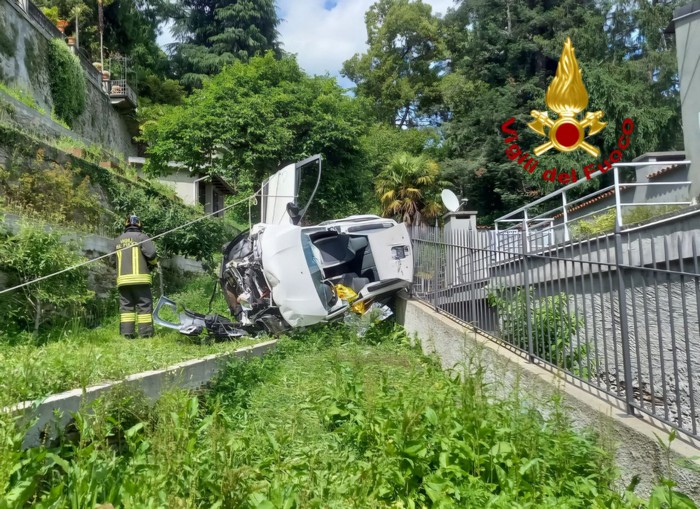 OGGEBBIO - 27-05-2025 -- Non ha riportato gravi ferite la donna che, nel pomeriggio di oggi, ha avuto un incidente d’auto a Oggebbio. In via Caremoli, strada che porta dalla litoranea al centro del paese, nei pressi di un tornante ha perso il controllo della vettura e, uscendo fuori strada in prossimità di un tornante, ha sfondato il muretto che delimita la carreggiata, precipitando nel giardino di una villa. Il veicolo s’è fermato dopo una ventina di metri e la donna è rimasta bloccata tra le lamiere accartocciate. Sono intervenute due squadre dei vigili del fuoco del comando provinciale di Verbania che, in un primo momento, hanno messo in sicurezza l’auto, stabilizzandola per, in un secondo momento, liberare la conducente – scossa, ma presente a sé – dall’abitacolo e per consegnarla alle cure dei sanitari. Solo quando la donna era in ambulanza sulla via dell’ospedale di Verbania, con l’autogru hanno recuperato il veicolo. Sul posto sono intervenuti anche i carabinieri di Cannobio, la polizia municipale di Oggebbio e i tecnici della provincia per il ripristino delle barriere di sicurezza in quel tratto di strada.