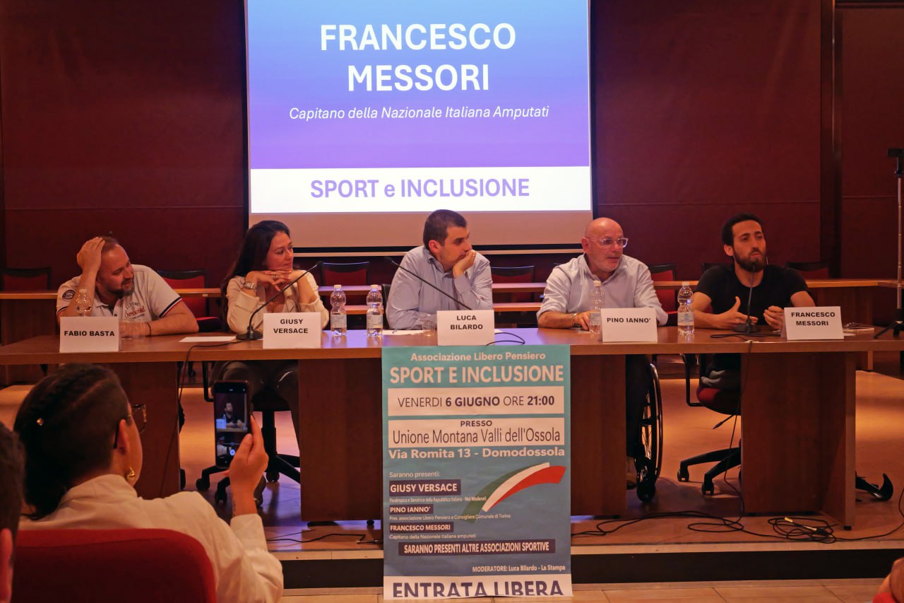 DOMODOSSOLA - 7-6-2025 -- Una serata all’insegna dello sport, dell’inclusione e del coraggio quella che si è svolta venerdì sera a Domodossola, dove il pubblico ha avuto l’occasione di ascoltare le testimonianze straordinarie di Giusy Versace, atleta paralimpica e senatrice, e di Francesco Messori, capitano della Nazionale Italiana Calcio Amputati.