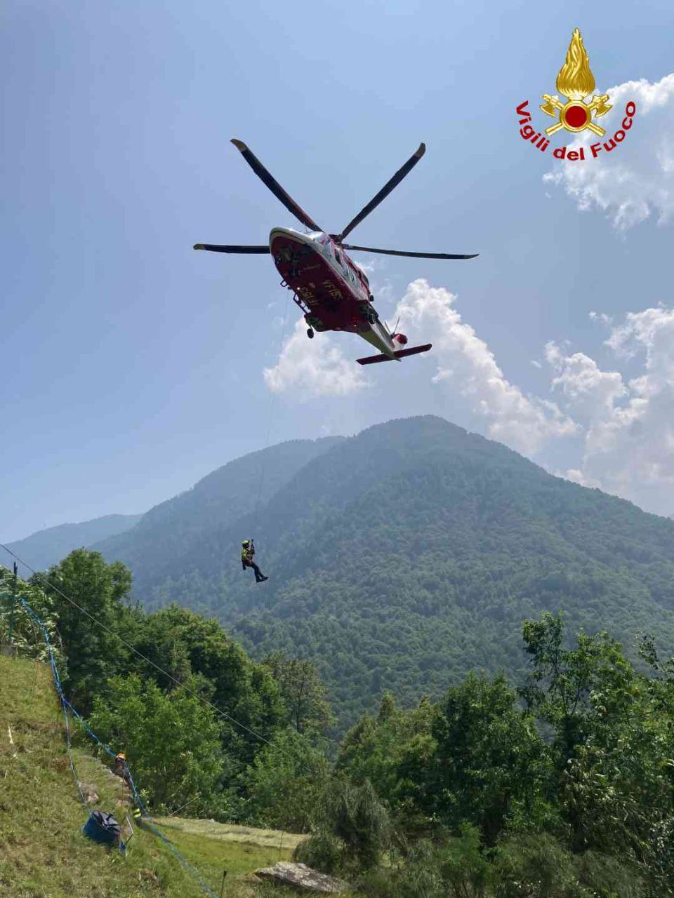 CALASCA CASTIGLIONE - 13-6-2025 -- Intervento delicato nella mattinata di venerdì 13 giugno per i Vigili del Fuoco del Verbano-Cusio-Ossola, impegnati nel recupero di un giovane bovino ferito nel Comune di Calasca Castiglione. L’animale, che si trovava al pascolo in località Gaggio, è caduto accidentalmente mentre rincorreva un altro capo, procurandosi la frattura di un arto.