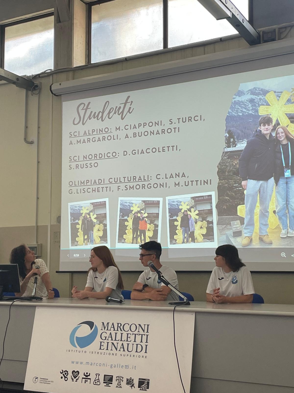 L’aula magna del plesso di via Ceretti ha ospitato anche quest’anno il ciclo di incontri “Tra scuola e scienza”, realizzato in collaborazione con il Liceo “Spezia” di Domodossola e dell’IPSAR “Fobelli” di Crodo. Ma ha ospitato anche un incontro di disseminazione e promozione del progetto “NextGen26 – verso le Olimpiadi 2026”; oltre al resoconto della partecipazione al progetto degli studenti Carlotta Lana (Olimpiadi culturali), Sara Turci e Andrea Buonaroti (sci alpino) e dei docenti che li hanno accompagnati, hanno portato le loro testimonianze alcuni campioni del nostro territorio: Adriano Darioli, olimpionico nel biathlon (Lake Placid 1980, Sarajevo 1984), Costanza Zanoletti, olimpionica nello skeleton (Torino 2006, Vancouver 2010), Federica Lani, sciatrice azzurra specialista nelle discipline di velocità, Serena Arrigoni, campionessa italiana “children” di super G e studentessa dell’Istituto. Ha moderato il convegno la professoressa Francesca Iossi, anche lei ex atleta olimpionica.