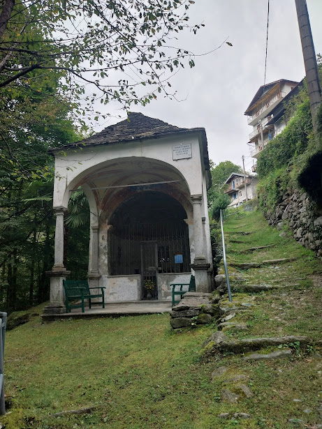 Adesso? C’è forse un solo albergo aperto, non ci sono più un bar o un negozio, c’è qualche edificio in rovina, c’è un’aria d’abbandono che rattrista. Con questi pensieri seguo la piccola strada, che diventa più in alto scalinata, passando dalla bella chiesa e tornando sulla provinciale all’altezza dell’ex hotel Croce Bianca. Scendo per qualche decina di metri ed imbocco il Sentiero del Paese Cantato. Inizialmente, in sintonia con Bognanco Fonti, ci sono un po’ di rovi, ma il sentiero è bello ed evidente, subito pulito.