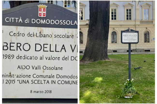 DOMODOSSOLA- 19-04-2026-- Omaggio simbolico al grande albero della vita di piazza Rovereto nella giornata dedicata alla donazione.