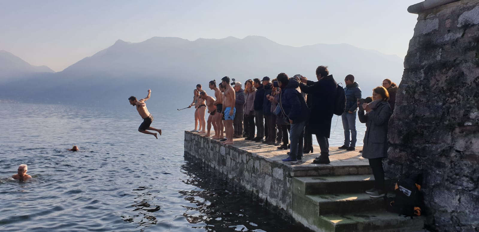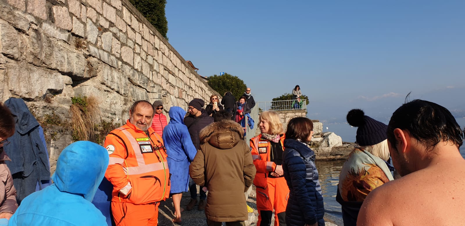 superava di poco i 7°, quello dell’aria arrivava a 11. Sono queste le condizioni atmosferiche –in una giornata di bel sole– che hanno accolto oggi a Ghiffa i 22 temerari che hanno scelto un tuffo nel Lago Maggiore per salutare l’Epifania e chiudere le feste. Il cimento numero diciassette organizzato dalla Pro Ghiffa ha avuto un numero di iscritti superiore a quello dell’anno passato, quando furono 16 a presentarsi alle 12,30 nella spiaggetta della darsena Baj, davanti alla chiesa di Santa Croce.